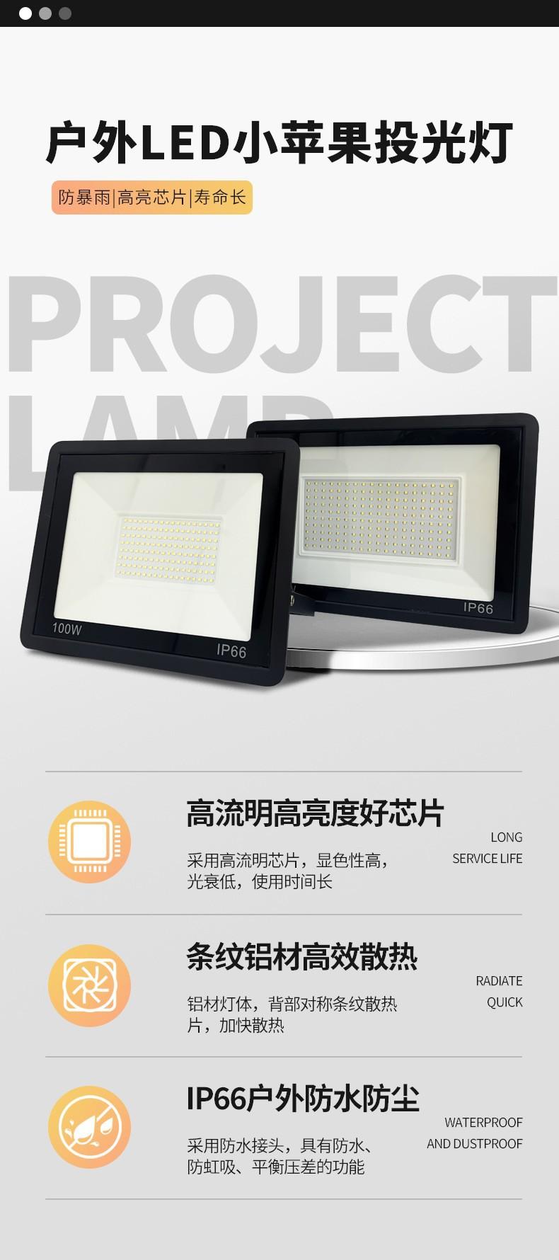 Reflector Apple para Exteriores Iluminación de Poste Alto Impermeable Luz Publicitaria 100W Cuadrado Reflector de Estadio Luz de Sitio de Construcción Luz Fuerte