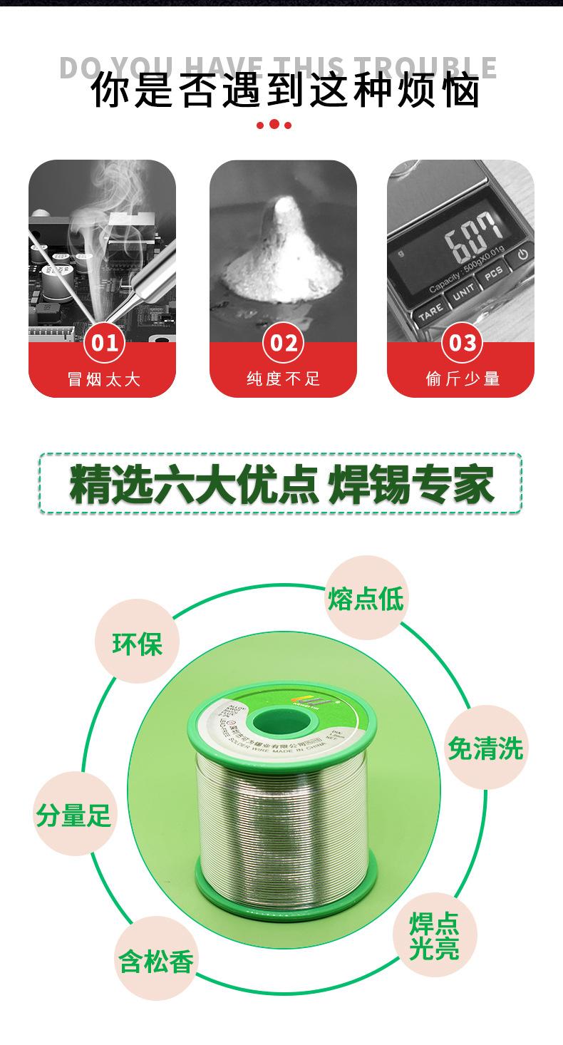 Alambre de estaño sin plomo de marca, alambre de estaño de 1000 g, núcleo de resina, placa de circuito de soldadura, tira de estaño ROHS2.0 SGS de bajo punto de fusión.