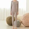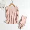 Conjunto de Ropa Interior Térmica Antibacterial de Seda Cachemira sin Costuras Gruesa para Mujer, Conjunto de Ropa Interior Térmica para Mujer para Otoño e Invierno