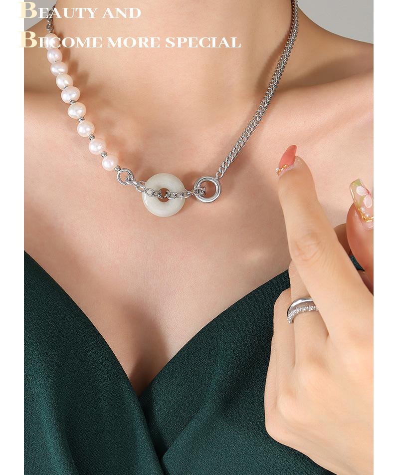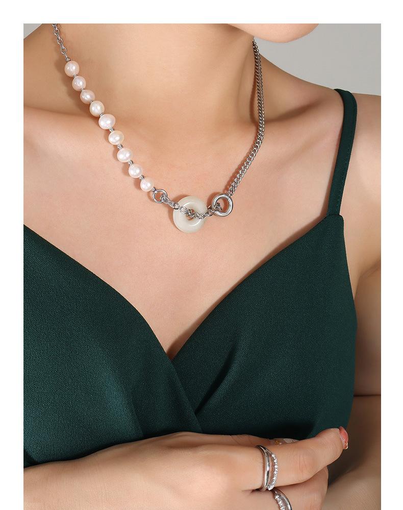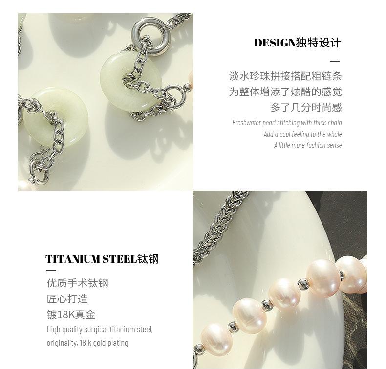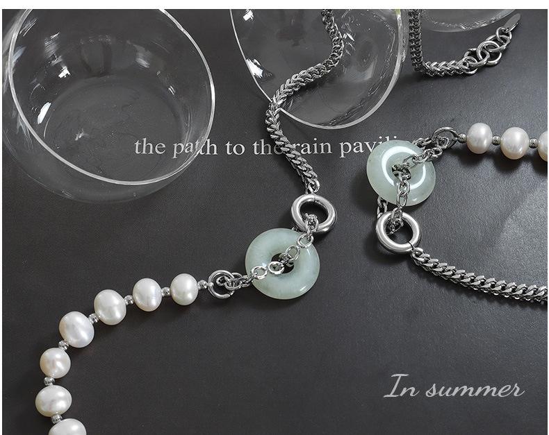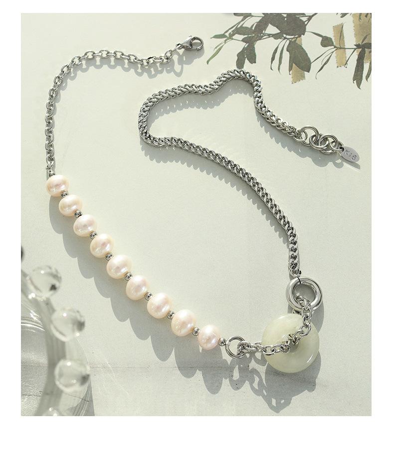 Collar de perlas de agua dulce naturales de estilo étnico personalizado, colgante de jade de estilo chino, cadena gruesa de acero de titanio, joyería de cadena de clavícula