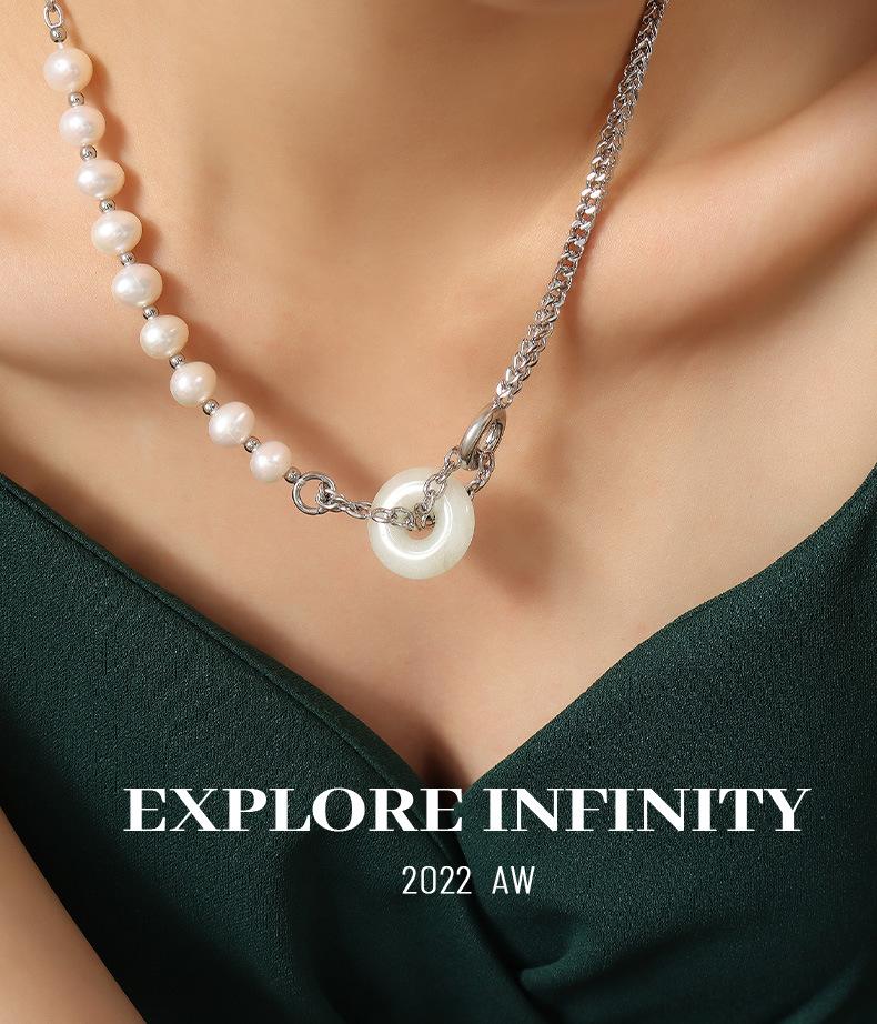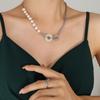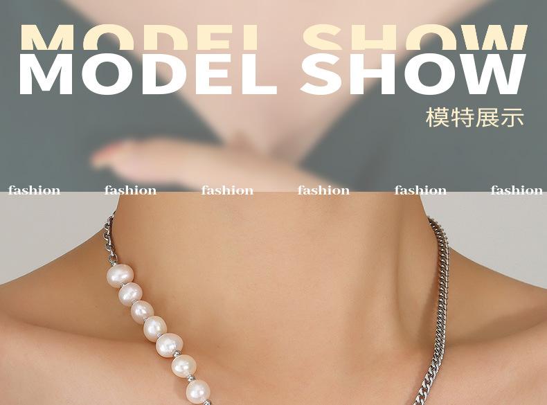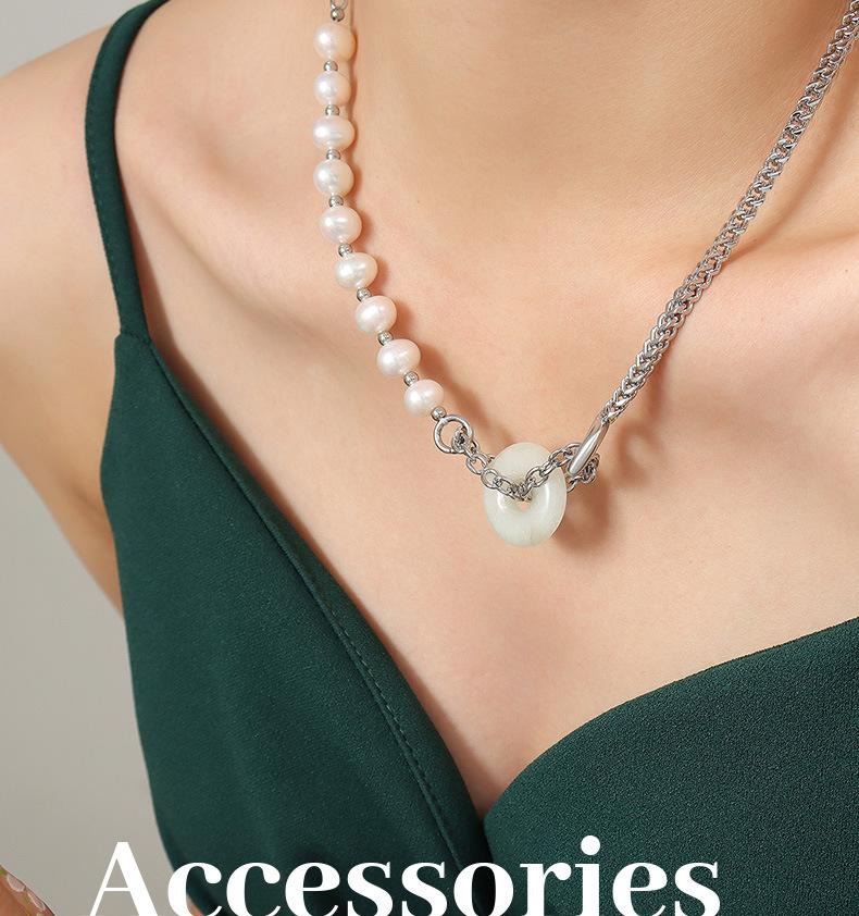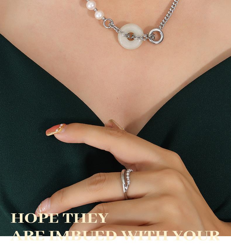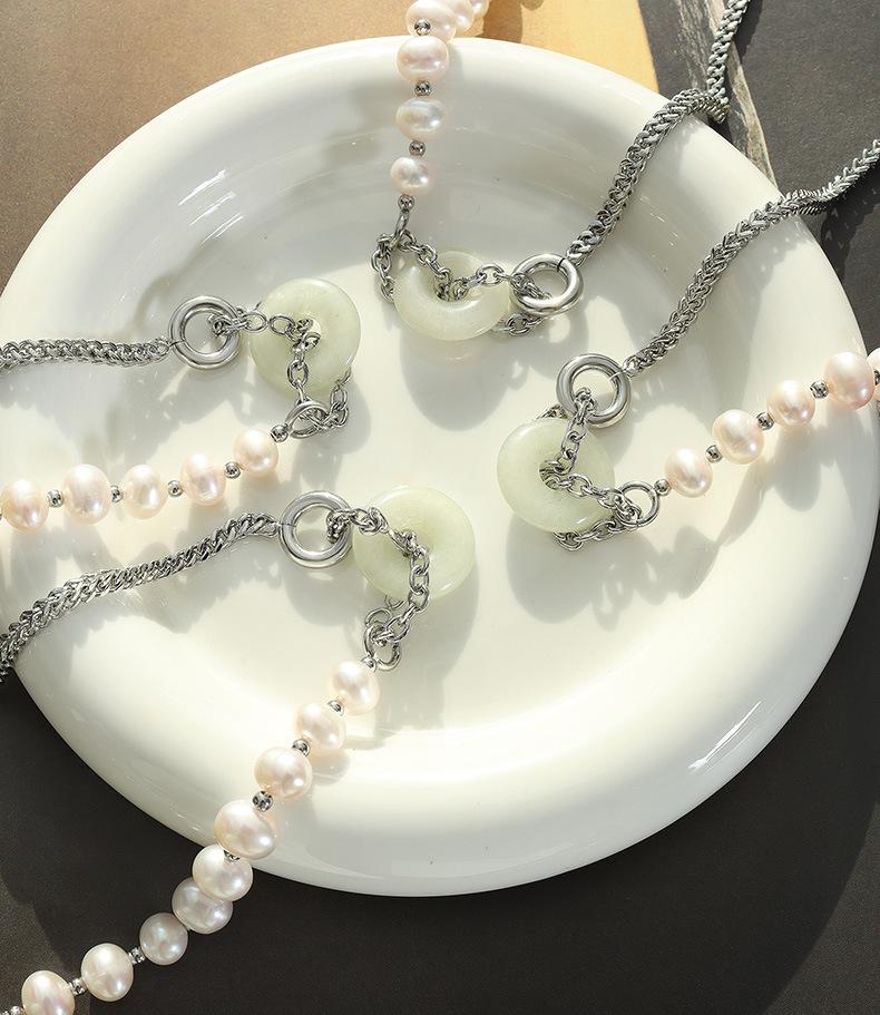 Collar de perlas de agua dulce naturales de estilo étnico personalizado, colgante de jade de estilo chino, cadena gruesa de acero de titanio, joyería de cadena de clavícula