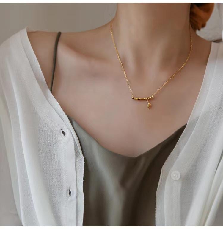 Collar de Bambú con Colgante Alto Nuevo 2023 Collar de Clavícula de Verano para Mujer Moda de Lujo Ligero Estilo Caliente de Celebridad de Internet