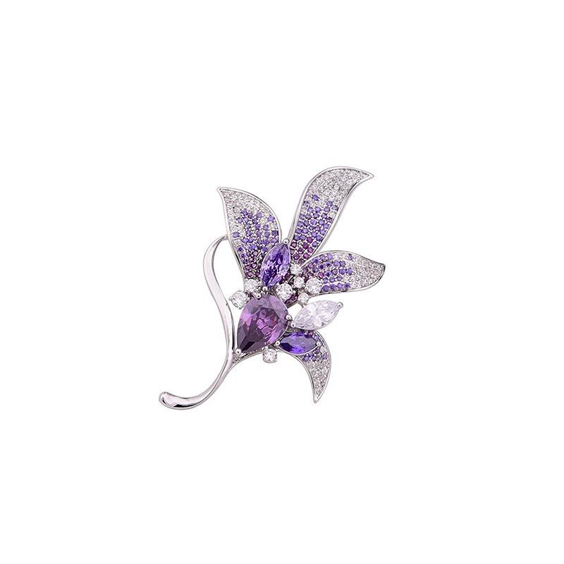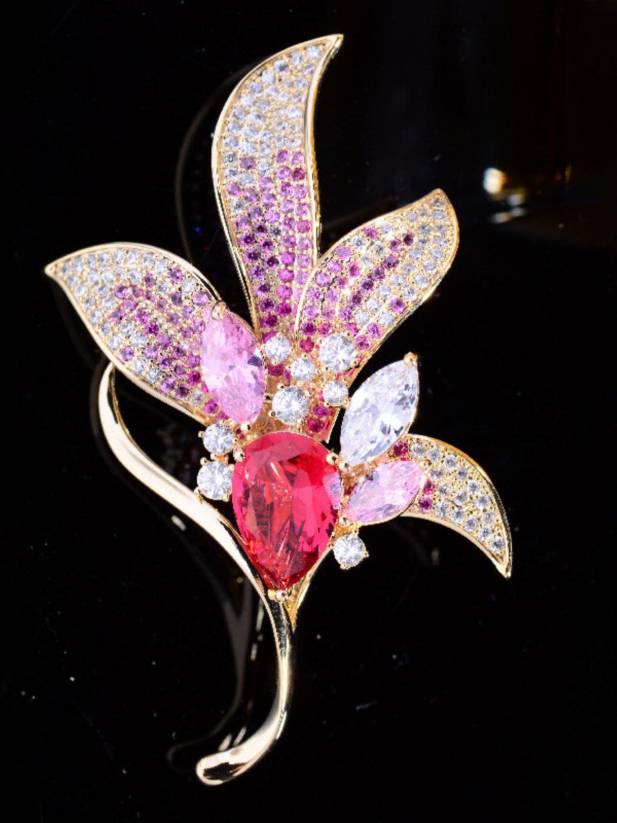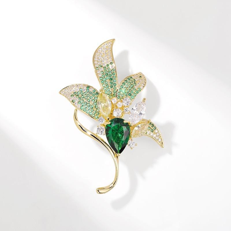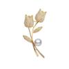 Broche elegante de magnolia con incrustaciones de circonita y cobre estilo coreano, nuevo accesorio de moda para traje y abrigo.