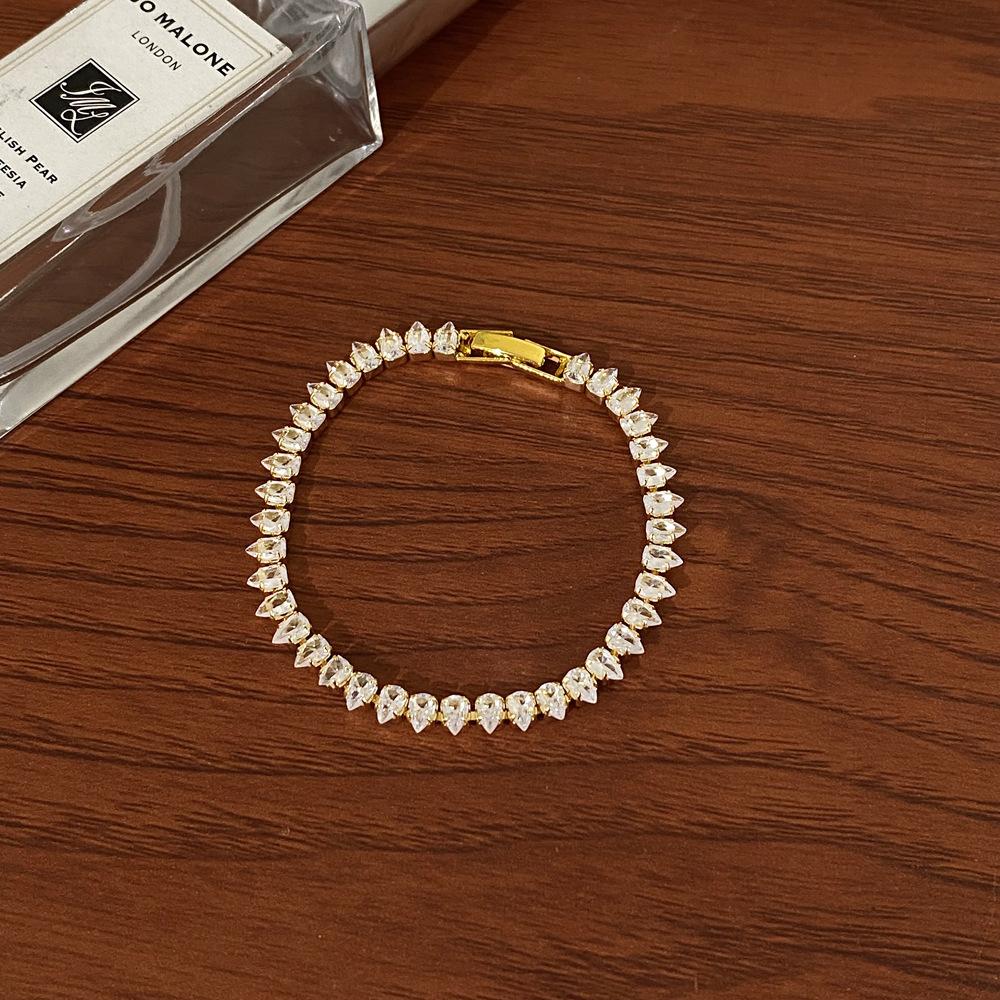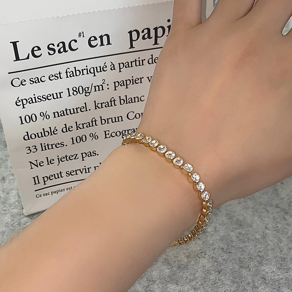 Pulsera Ins Diamante Completo Zirconia Super Brillante para Mujer Lujo Accesible Francés Diseño Nicho Exquisito Socialité Joyería de Mano para Mujer Cobre Chapado Oro Real
