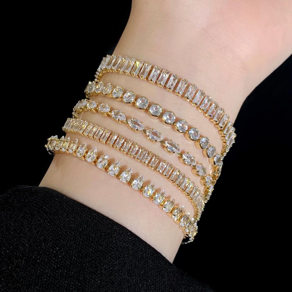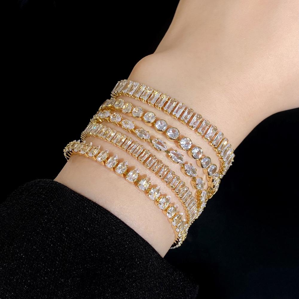 Full Diamond Zirconium Bracelet, Full Drill Small Square Zirconium Bracelet, Drilled Round Zirconium Bracelet,...