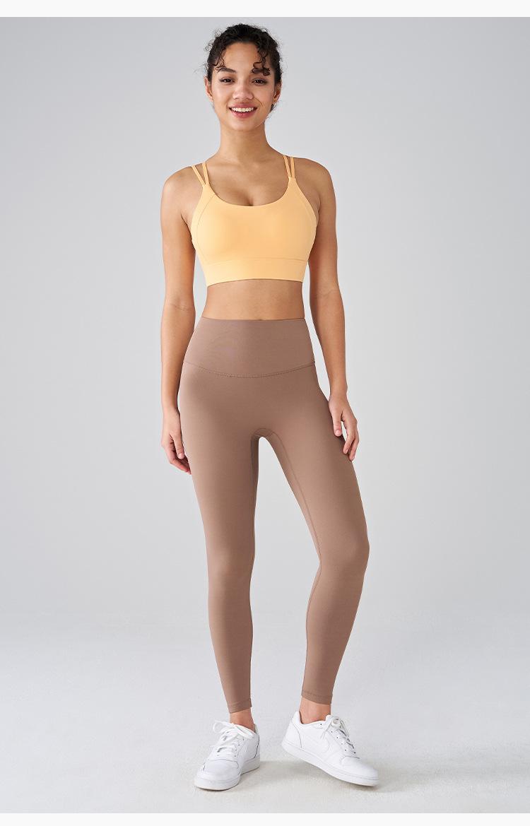 Pantalones de yoga ajustados de cintura alta para mujer, con efecto lijado sin vergüenza, color melocotón, para correr y levantar caderas, deportivos y fitness.