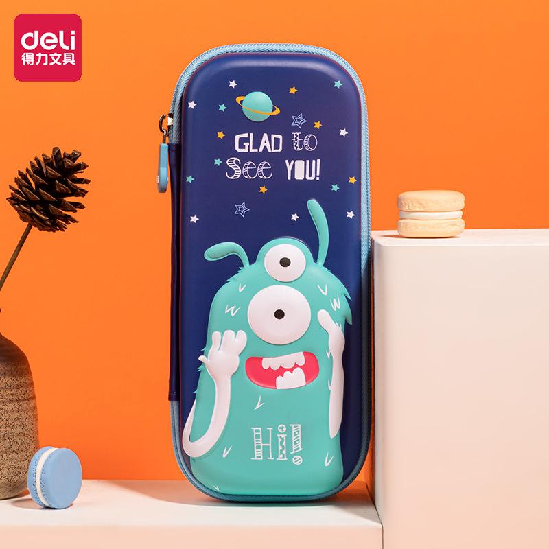 Estuche para lápices para niños y estudiantes de papelería Deli, estuche para lápices, bolsa de almacenamiento para estudiantes, estuche para lápices de gran capacidad con dibujos animados.