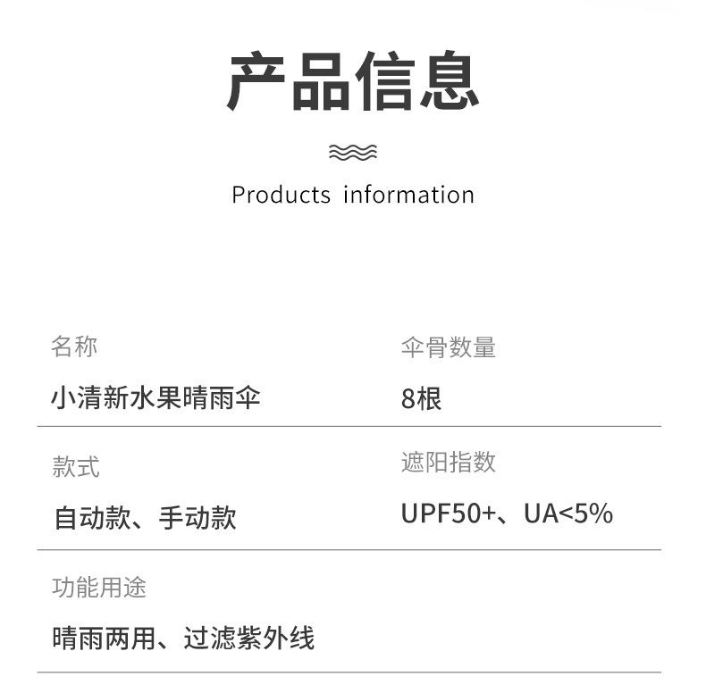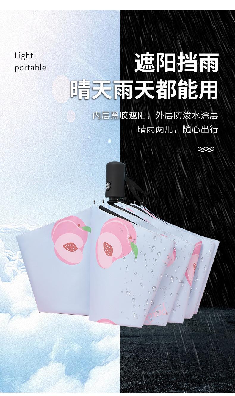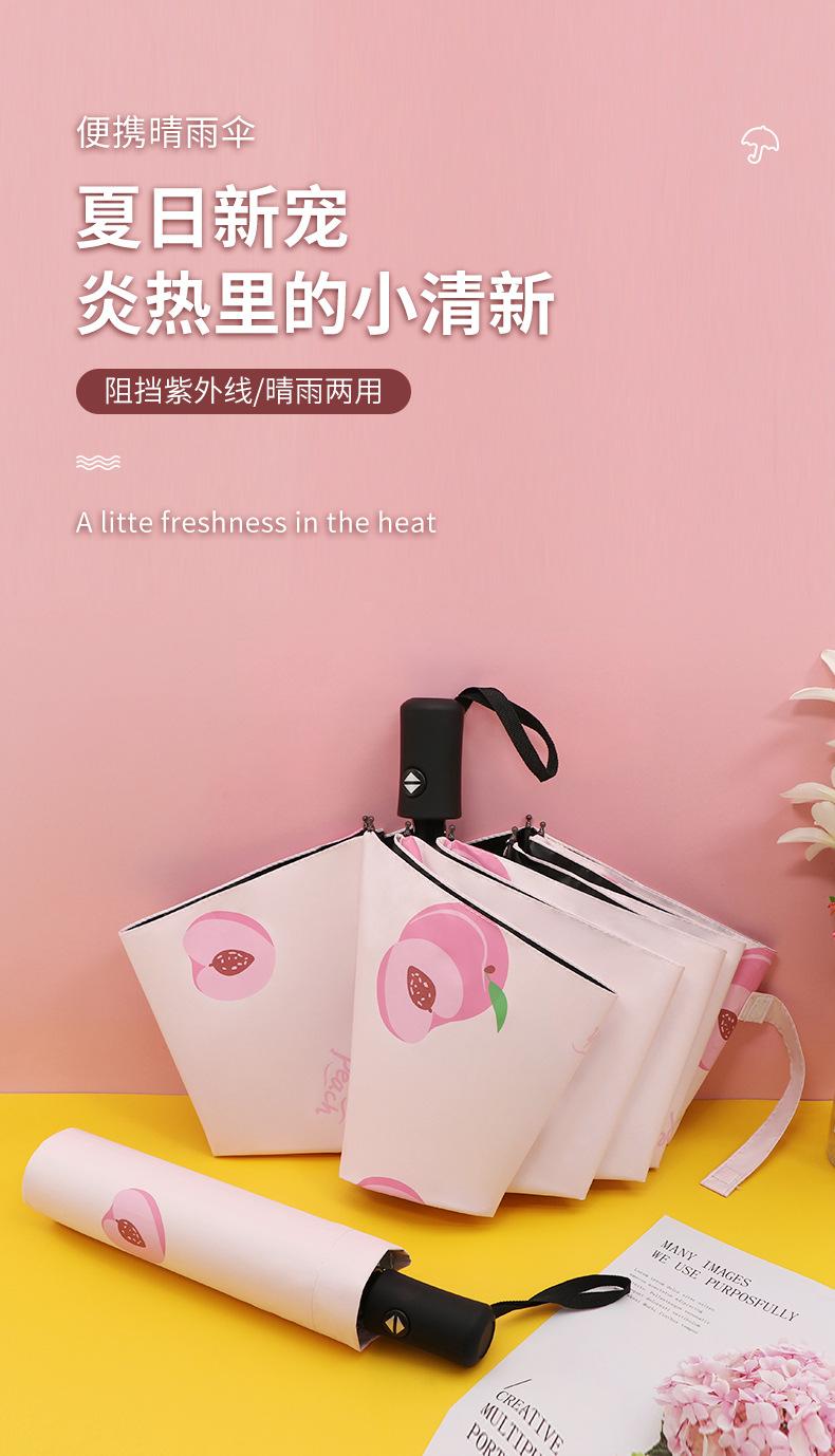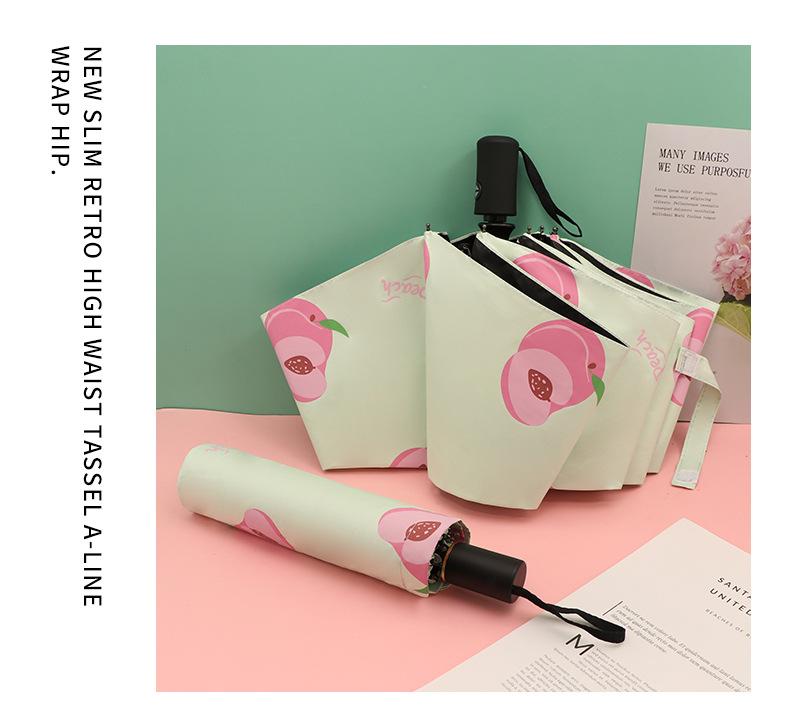 Paraguas de Melocotón Estampado de Fruta Fresca Totalmente Automático Estudiante Sombrilla Sombrilla