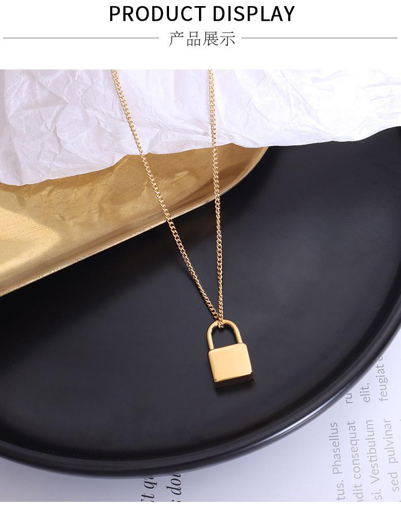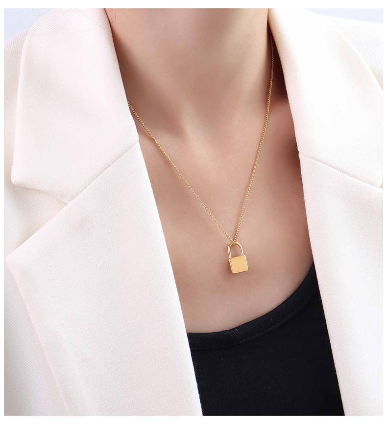 Europa y los Estados Unidos un viento frío moda cerradura colgante collar al por mayor joyería femenina titanio acero chapado en oro de 18 quilates una generación de cabello