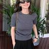 Suéter de punto de manga corta para mujer, de primavera y verano, de lana fina y holgada, con cuello redondo y base de color liso, prenda exterior de punto para mujer.