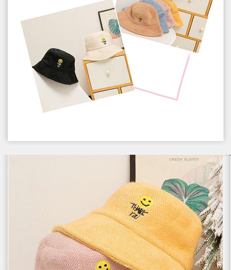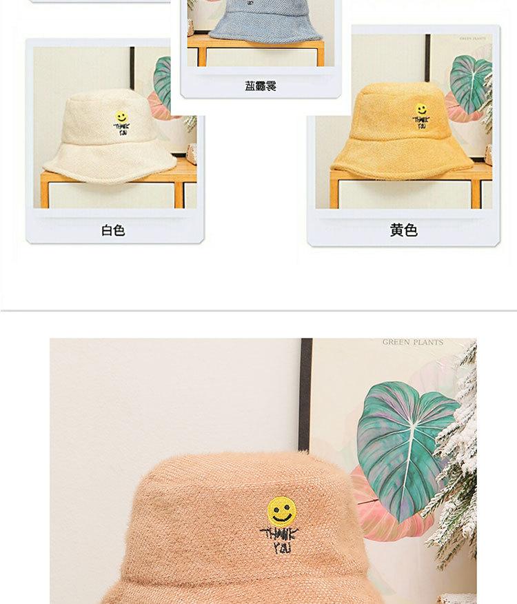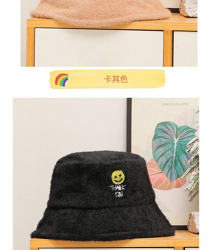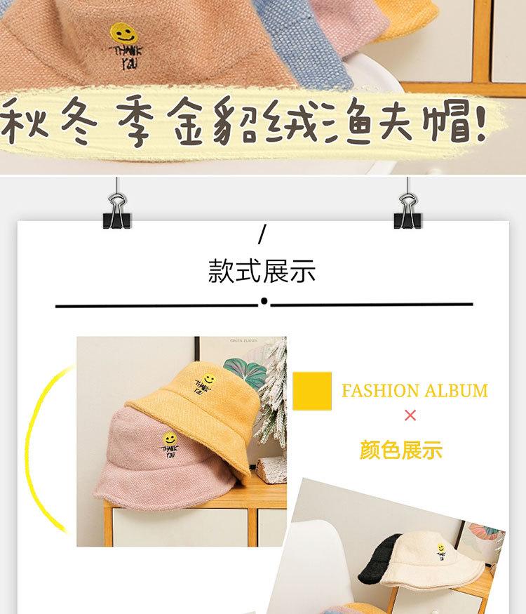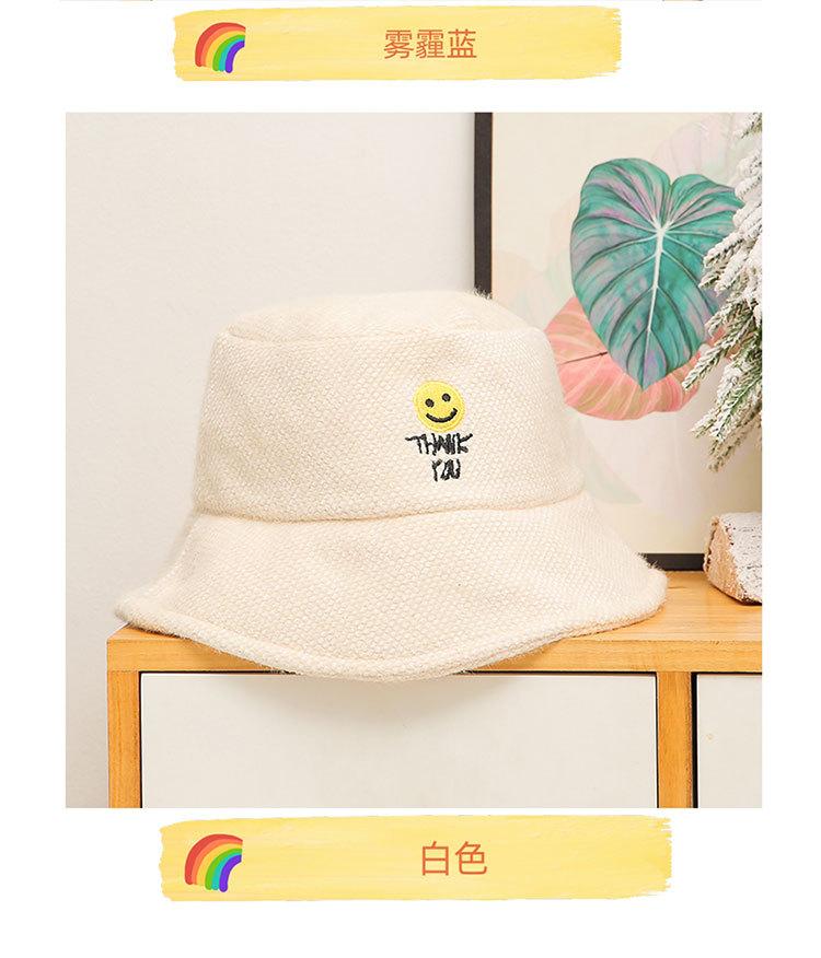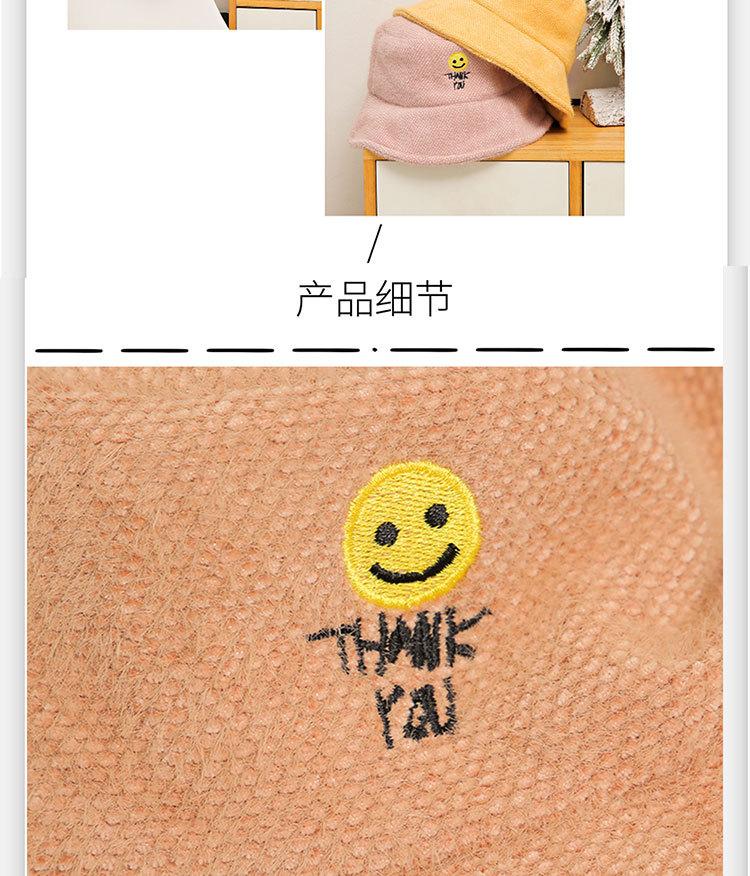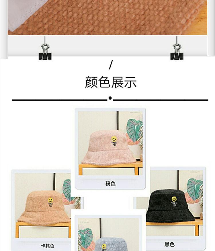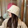 Sombrero de Pescador de Otoño e Invierno para Mujer 2025 Nuevo Celebridad de Internet Bordado Cara Sonriente Coreano Circunferencia de Cabeza Grande Felpa Estilo Japonés Sombrero de Cubo Sombrero de Cubeta
