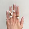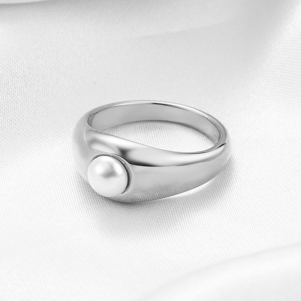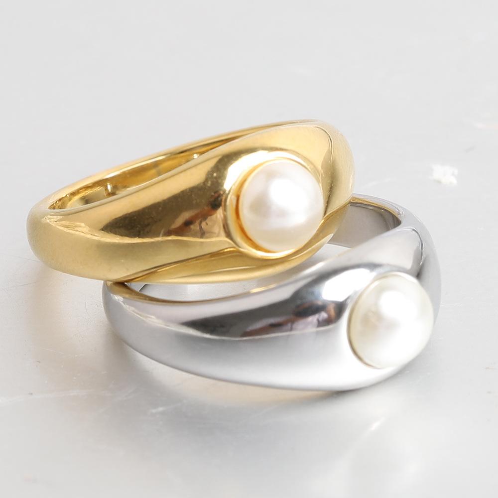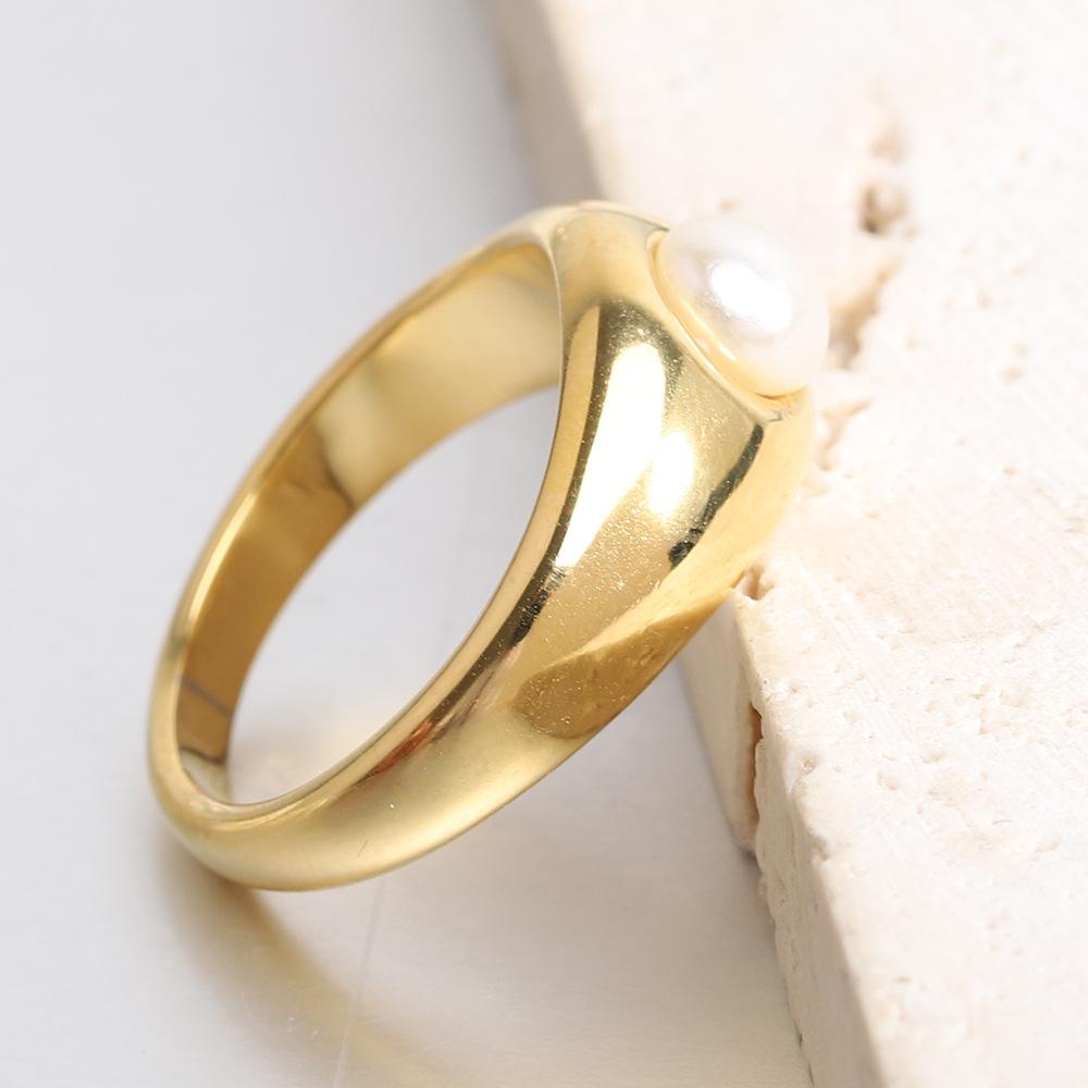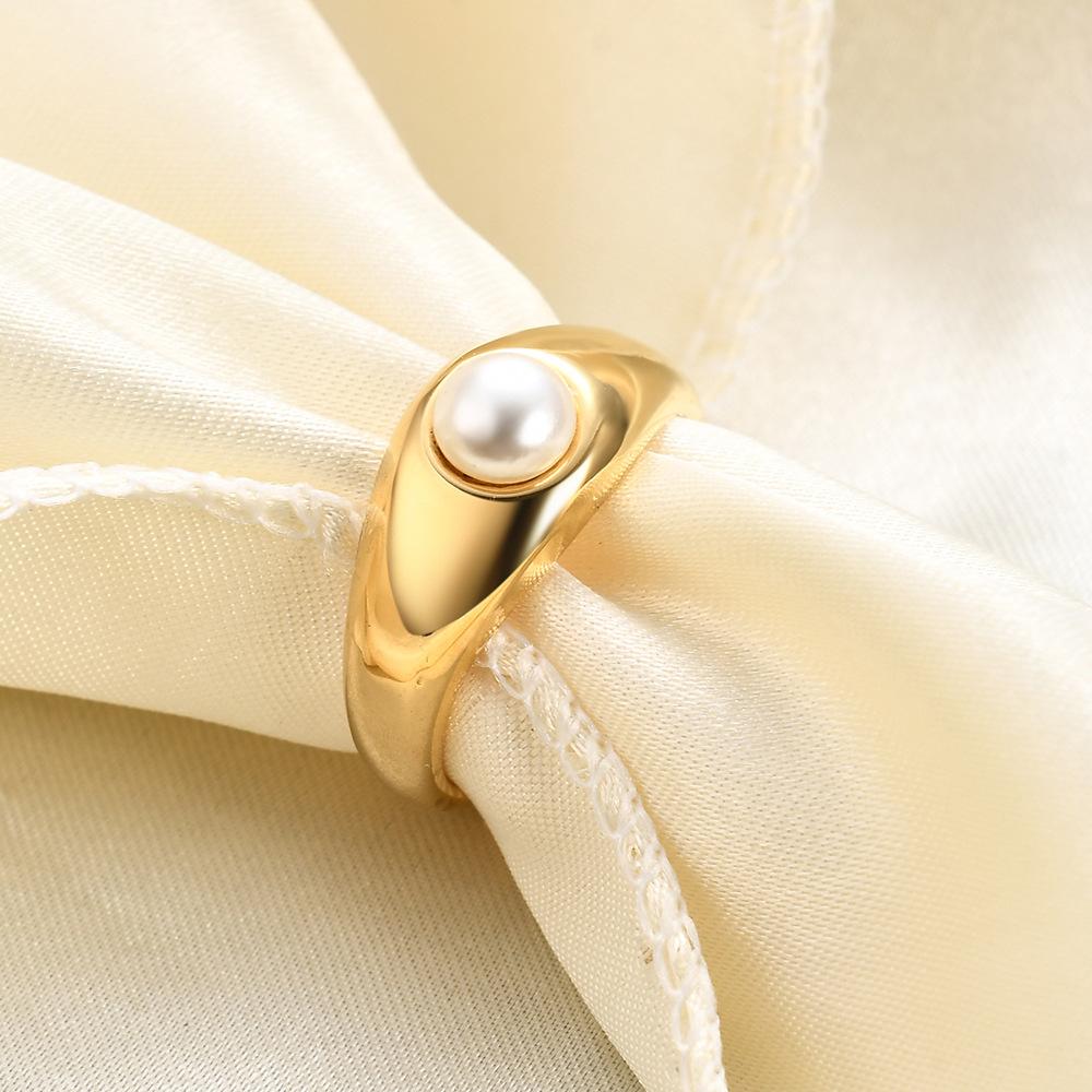 Anillo Versátil de Moda Ins Europea y Americana Anillo de Perla de Imitación Oro de 18K Simple Transfronterizo Nuevo Anillo de Acero Inoxidable Venta al por Mayor