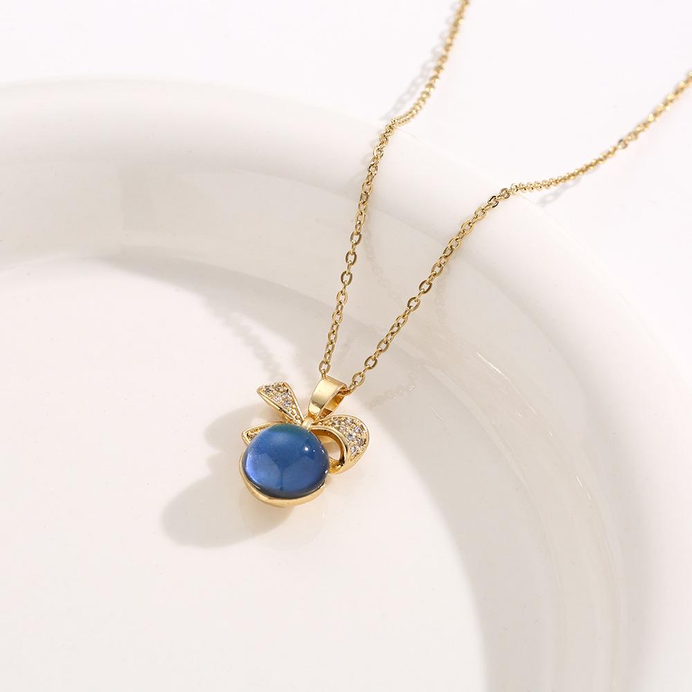 Collar de acero de titanio para mujer, estilo ins, lindo temperamento, colgante de mariposa de ópalo, diseño de cadena de clavícula, accesorios femeninos con personalidad