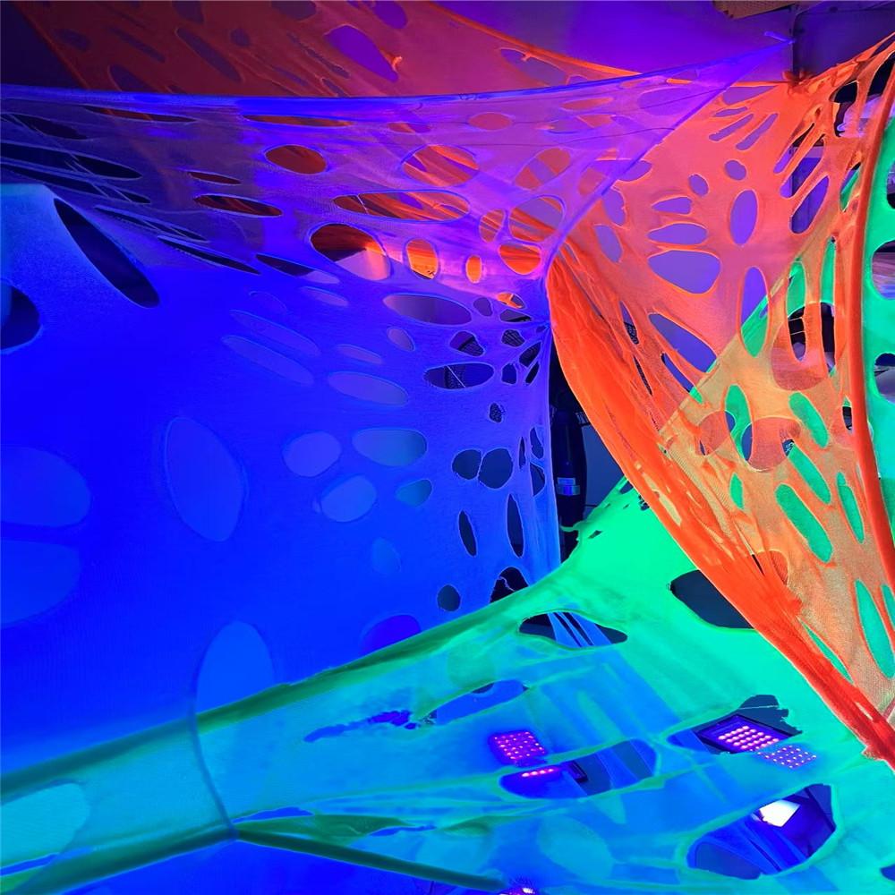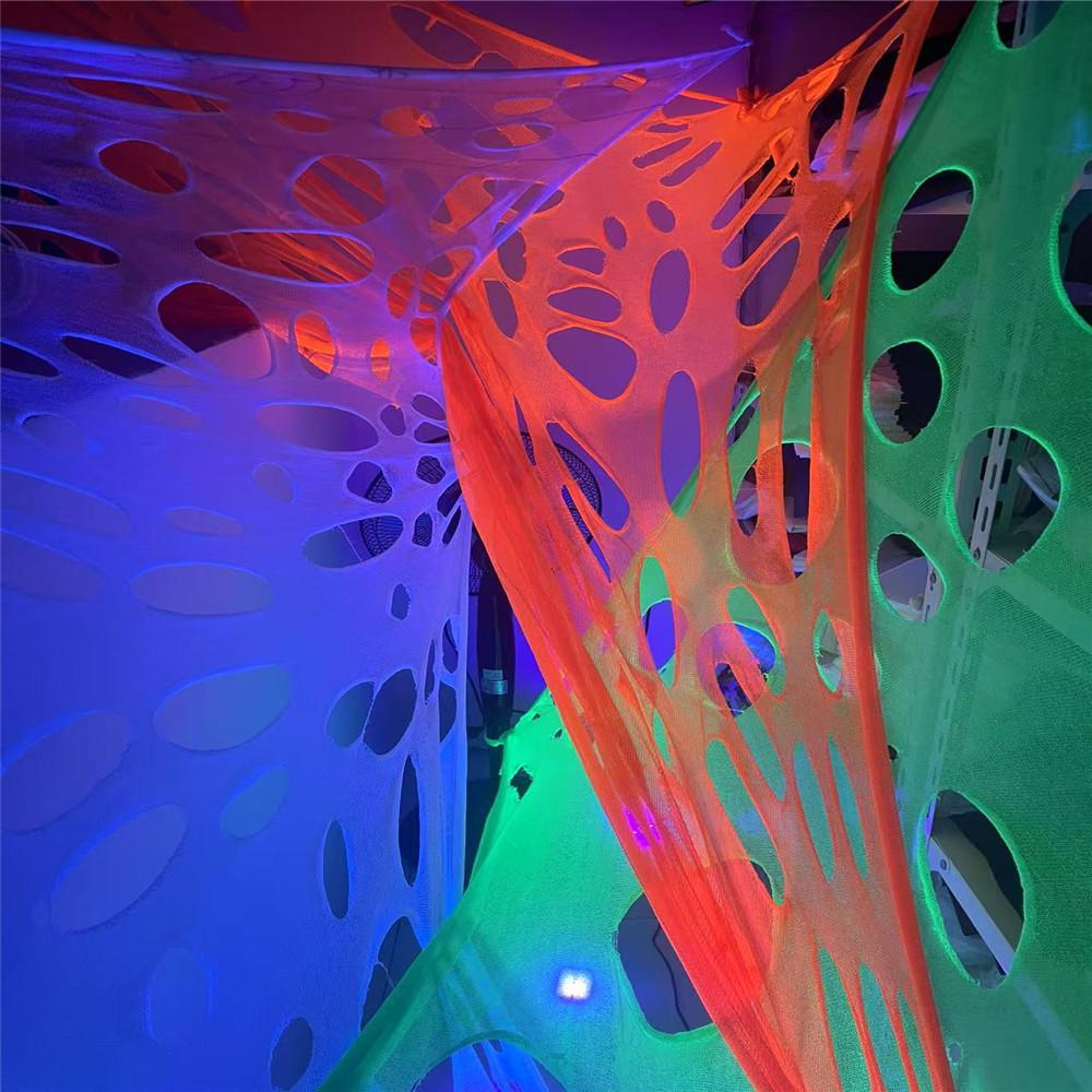 La tela de araña fluorescente, altamente elástica y cortable, suele ser un material de malla utilizado para decoración o necesidades funcionales específicas. A continuación, se presentan sus características, usos, materiales y otras dimensiones: