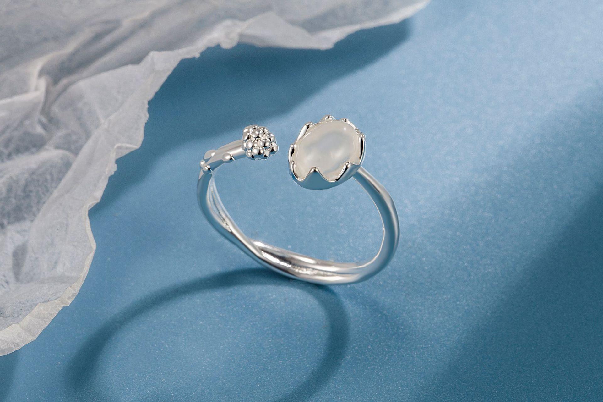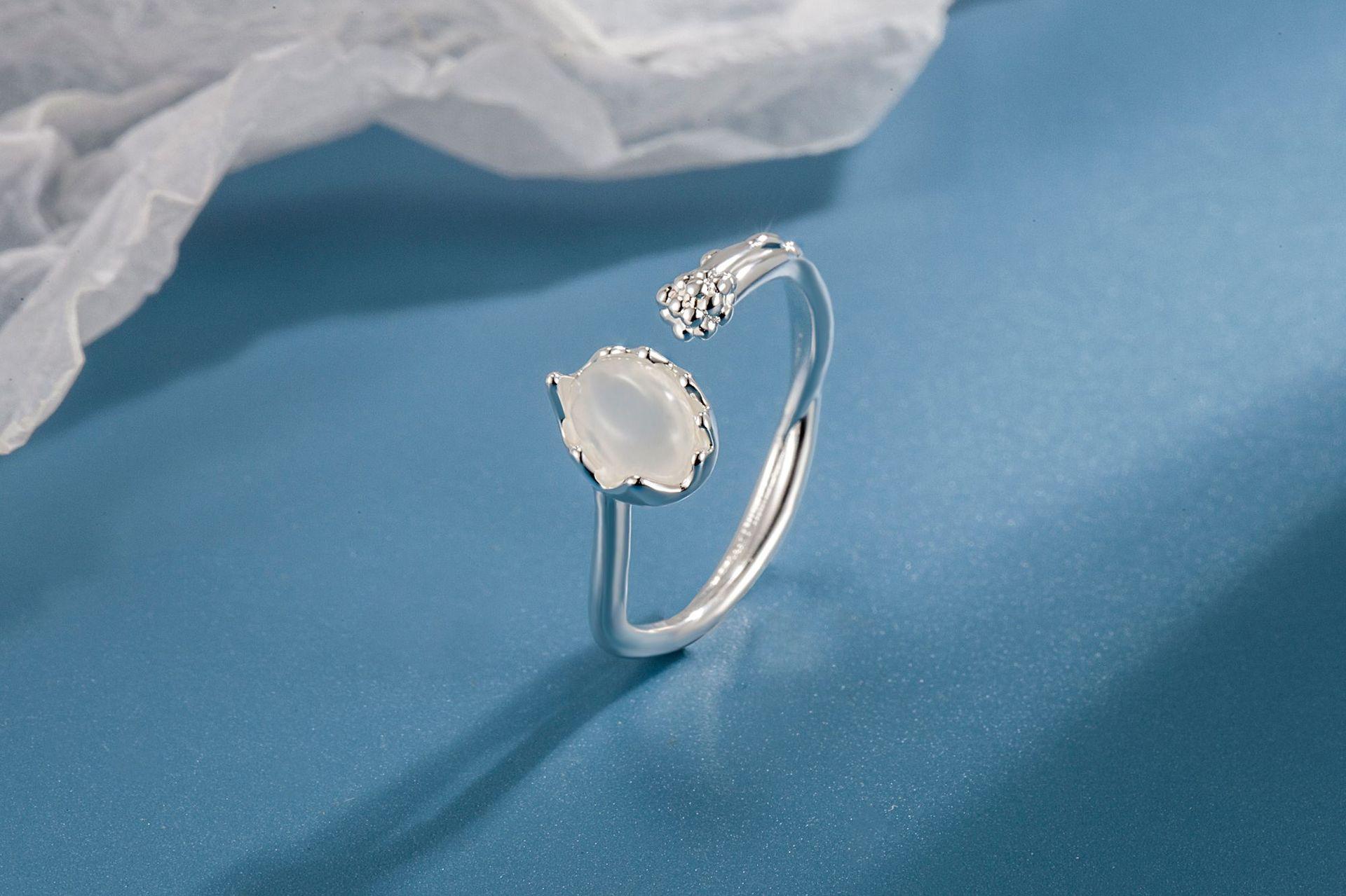 Luz de Luna Blanca anillo de dos piezas de doble capa Piedra Lunar anillo liso ajuste de apertura personalidad de alta gama anillo simple dulce y cool