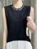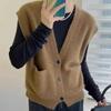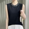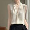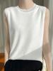 Venta al por mayor, elegante chaleco de verano con cuello redondo de punto de diamante, de lana peinada, combinable con todo, holgado, sin mangas