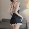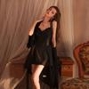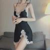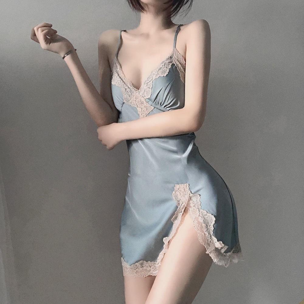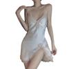 Nuevo Camisón Sexy Elegante de Encaje de Seda de Hielo con Abertura Delgado Ropa para el Hogar Tentación de Vecina Hermoso Camisón de Tirantes con Espalda Descubierta para Mujer