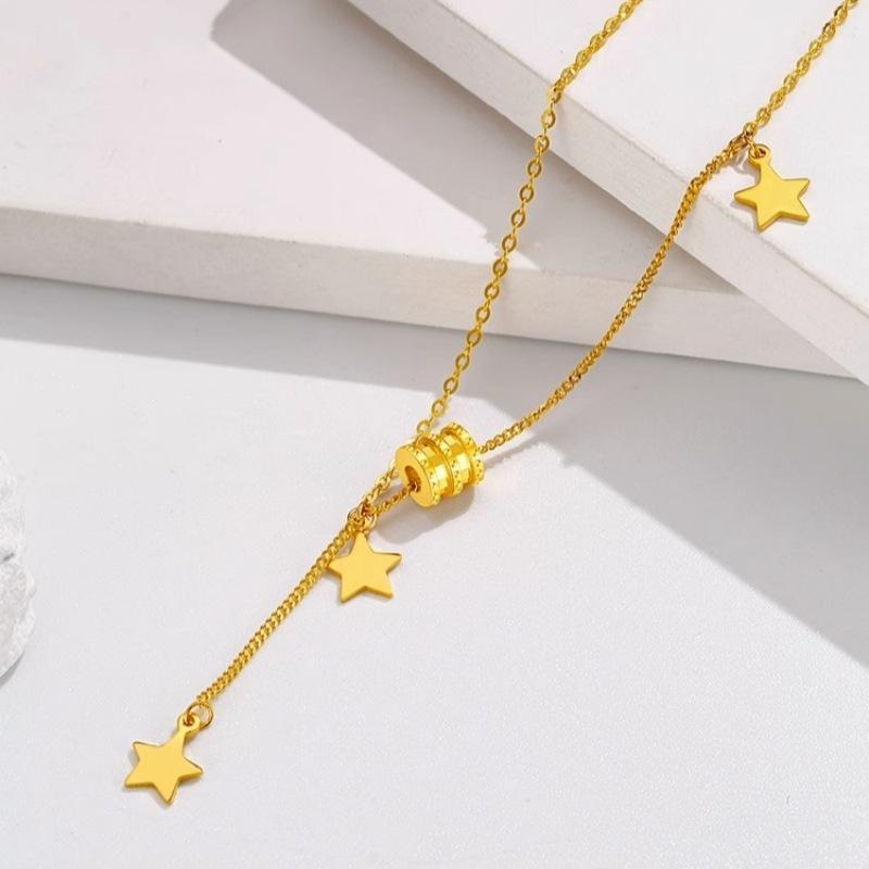 Nuevo collar de estrella de cinco puntas con cintura pequeña para hombre, dorado arena, cadena de clavícula de imitación dorada a la moda para mujer, suministro en vivo