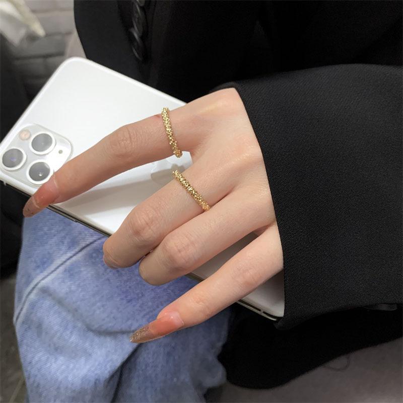 Nuevo anillo brillante Anillo para novia de oro amarillo de diseño nicho ins de lujo ligero para mujer estilo frío apertura ajustable