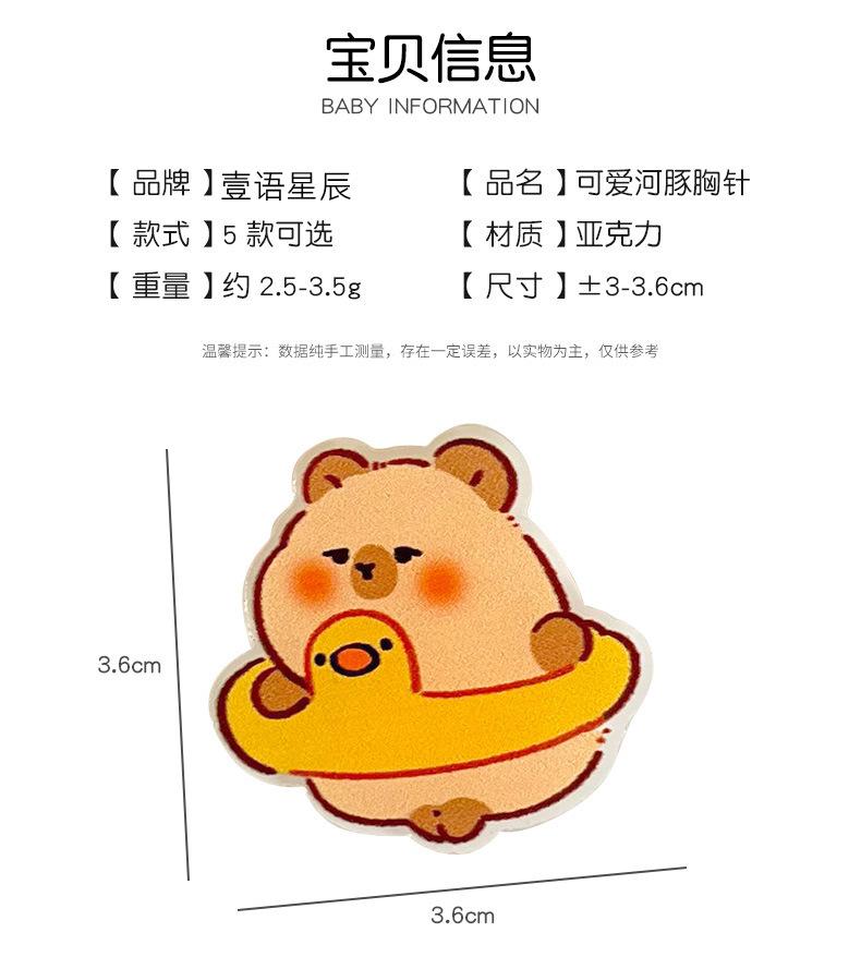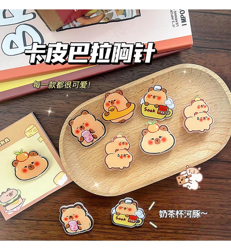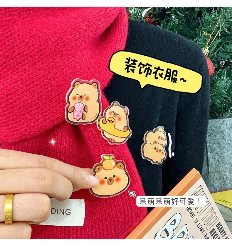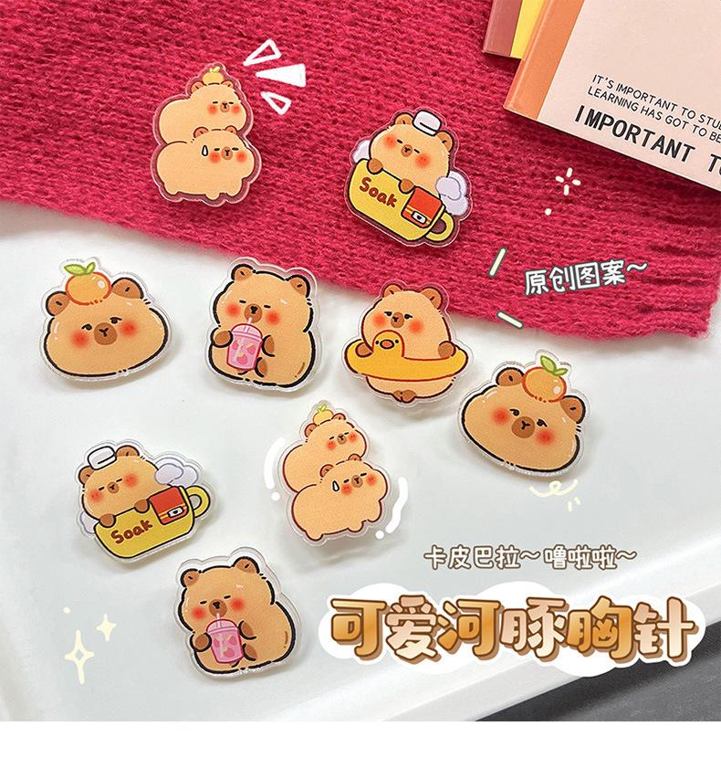 Broche de animal de dibujos animados, pin decorativo para estudiantes, insignia de conejillo de indias, bolso de acrílico, estuche de lápices, accesorios