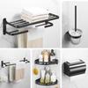 Toallero de baño sin perforaciones, de aluminio, color negro, con espacio para toallas, juego de herrajes colgantes para baño