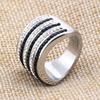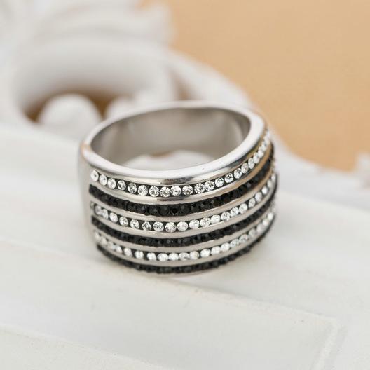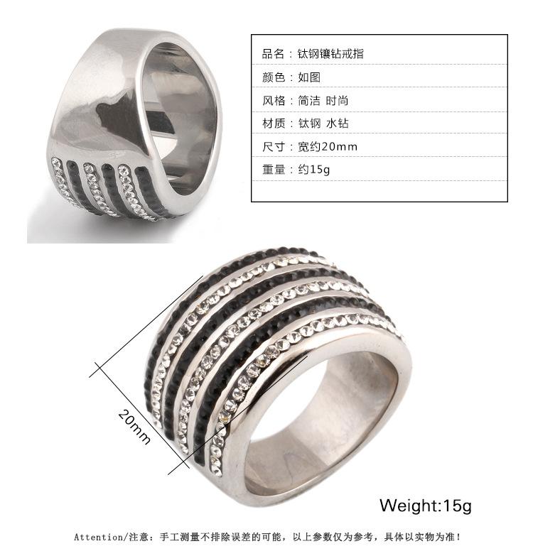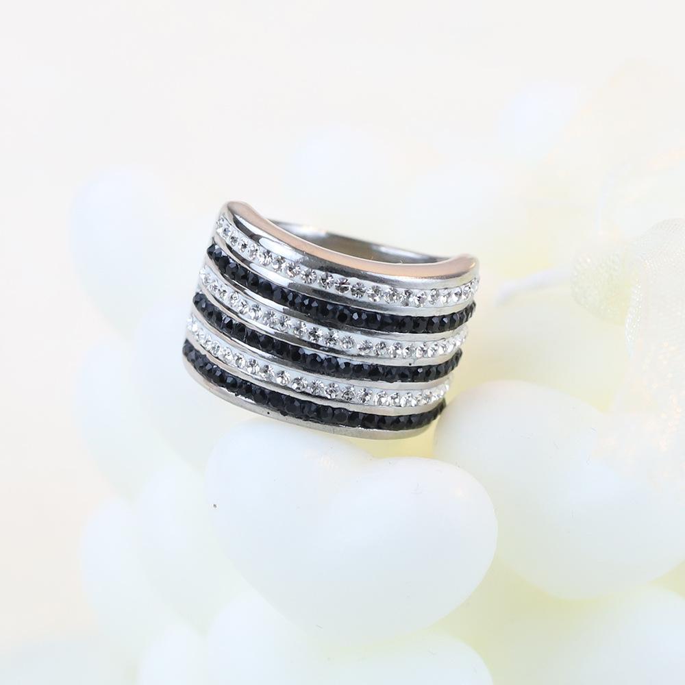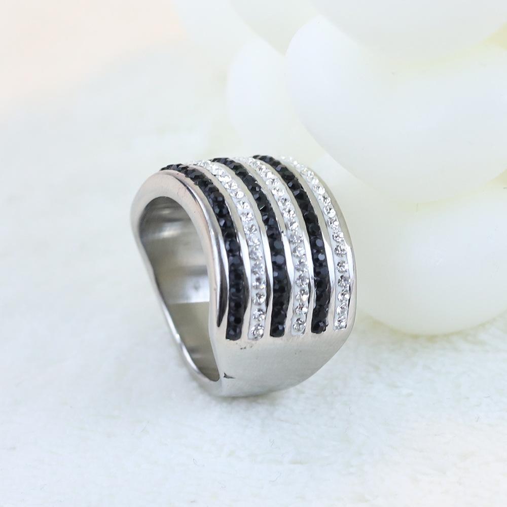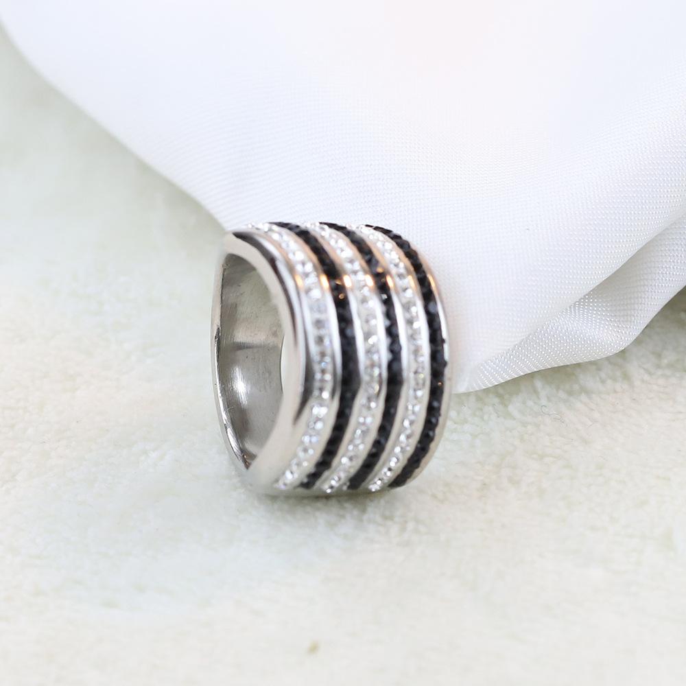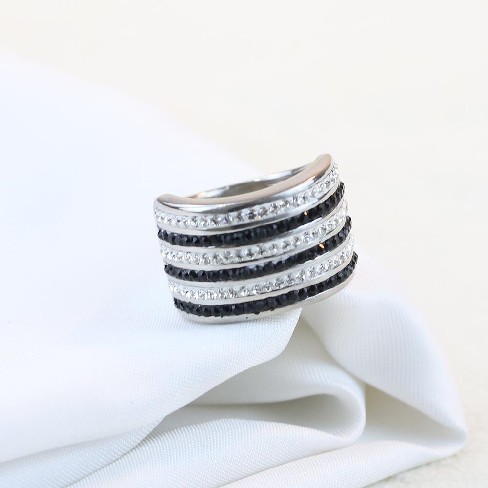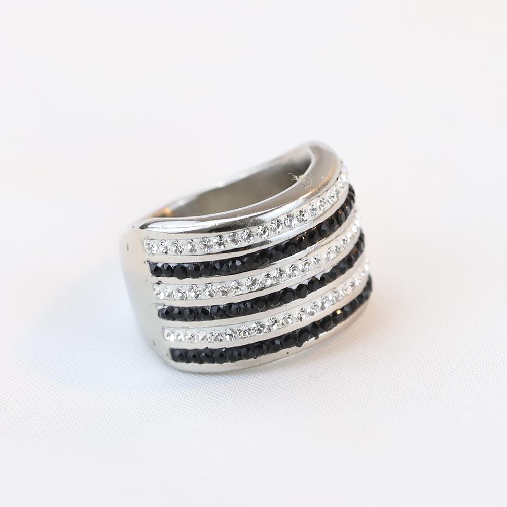 Anillo Europeo y Americano Nuevo de Moda Retro de 20 mm Transfronterizo de 6 Filas de Diamantes Blanco y Negro Acero Titanio Anillo de Acero Inoxidable Venta al por Mayor para Mujeres