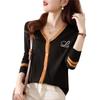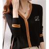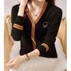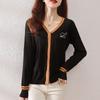 2025 Primavera y Otoño Nuevo Estilo Coreano Más Fácil de Combinar Bloque de Color Cárdigan de Punto Femenino Cuello en V Suéter Tops Moda Top Trendy