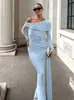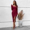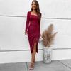 Ropa de mujer europea y americana primavera y verano 2024 explosiones transfronterizas abertura cordón ajustado cuello cuadrado falda línea A cadera vestido manga larga