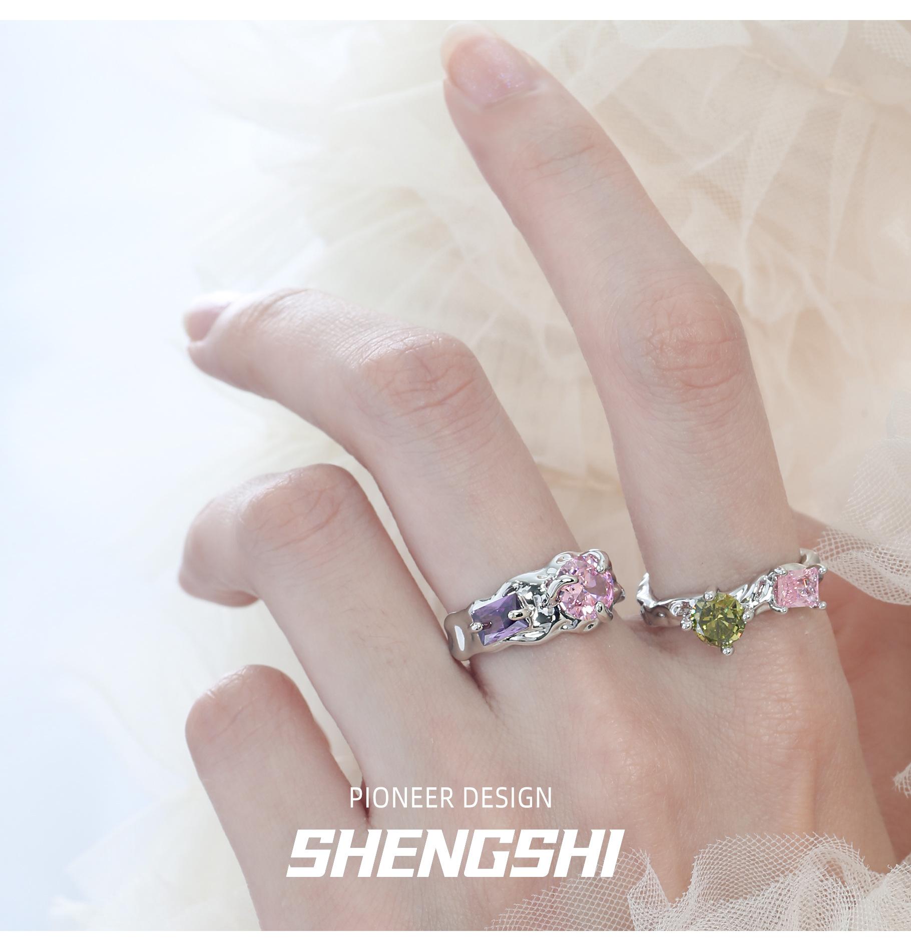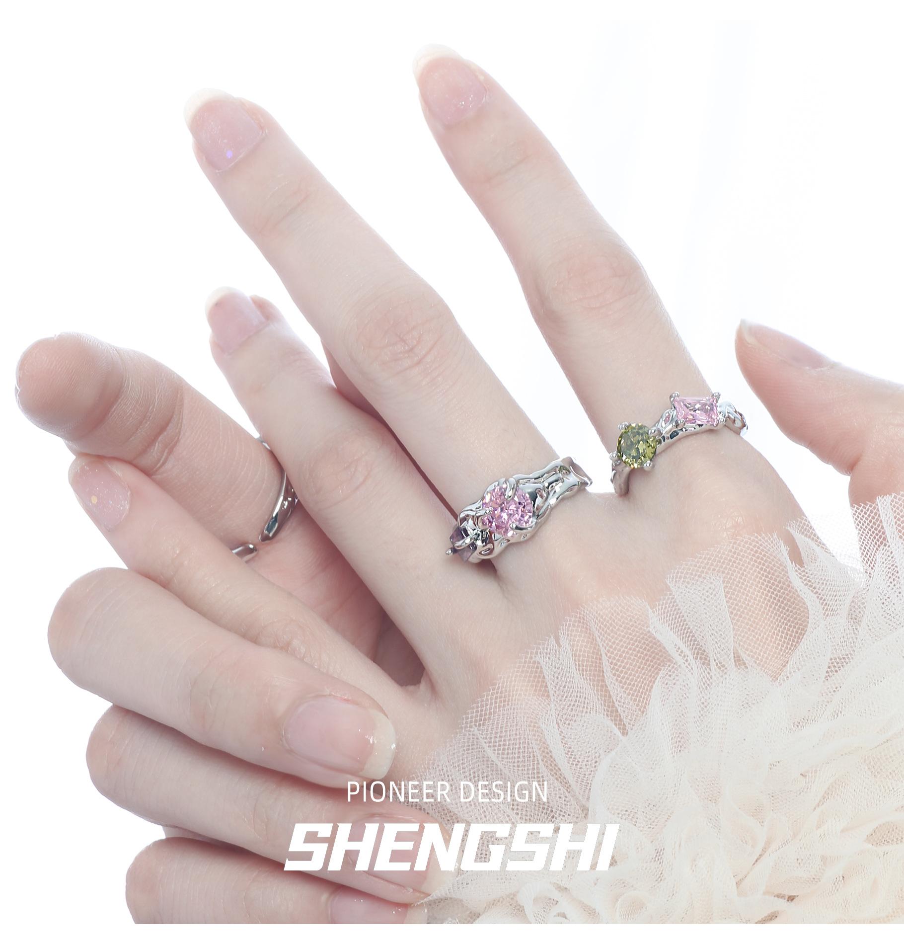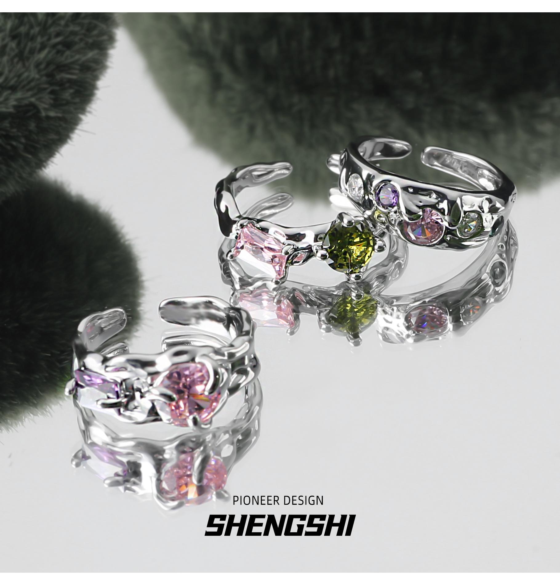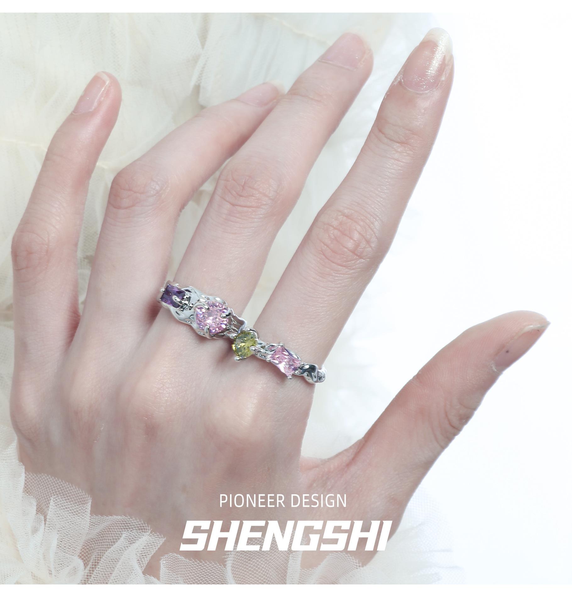 Anillo original de estilo coreano para mujer, venta al por mayor, diseño de nicho de circonita de color, ligero, de lujo, estilo dulce y fresco, temperamento, anillo abierto que combina con todo.