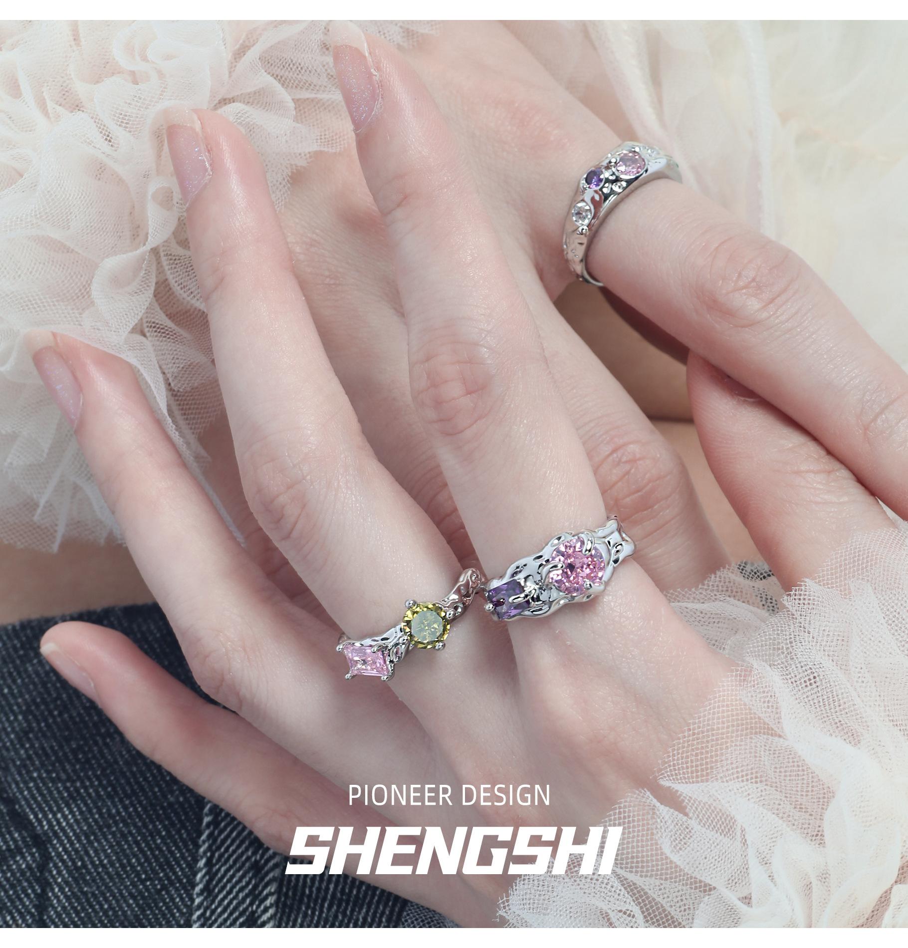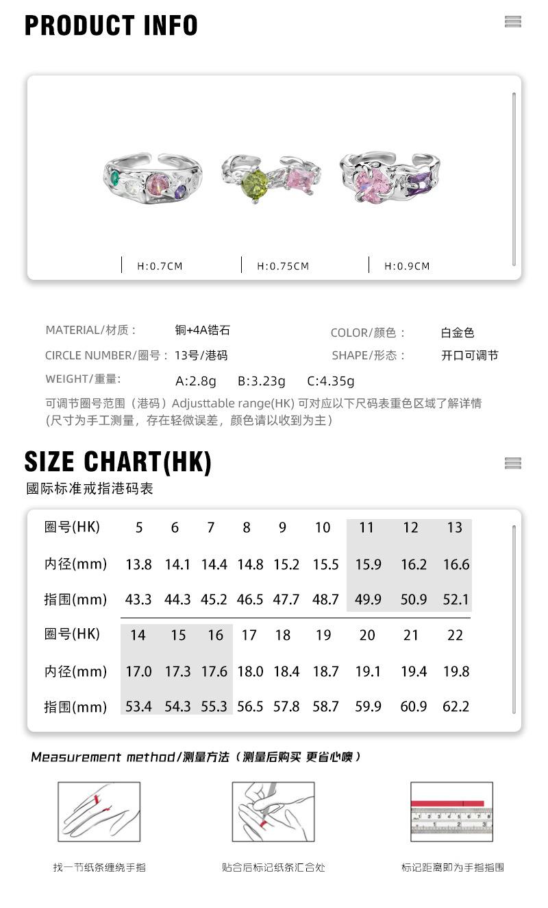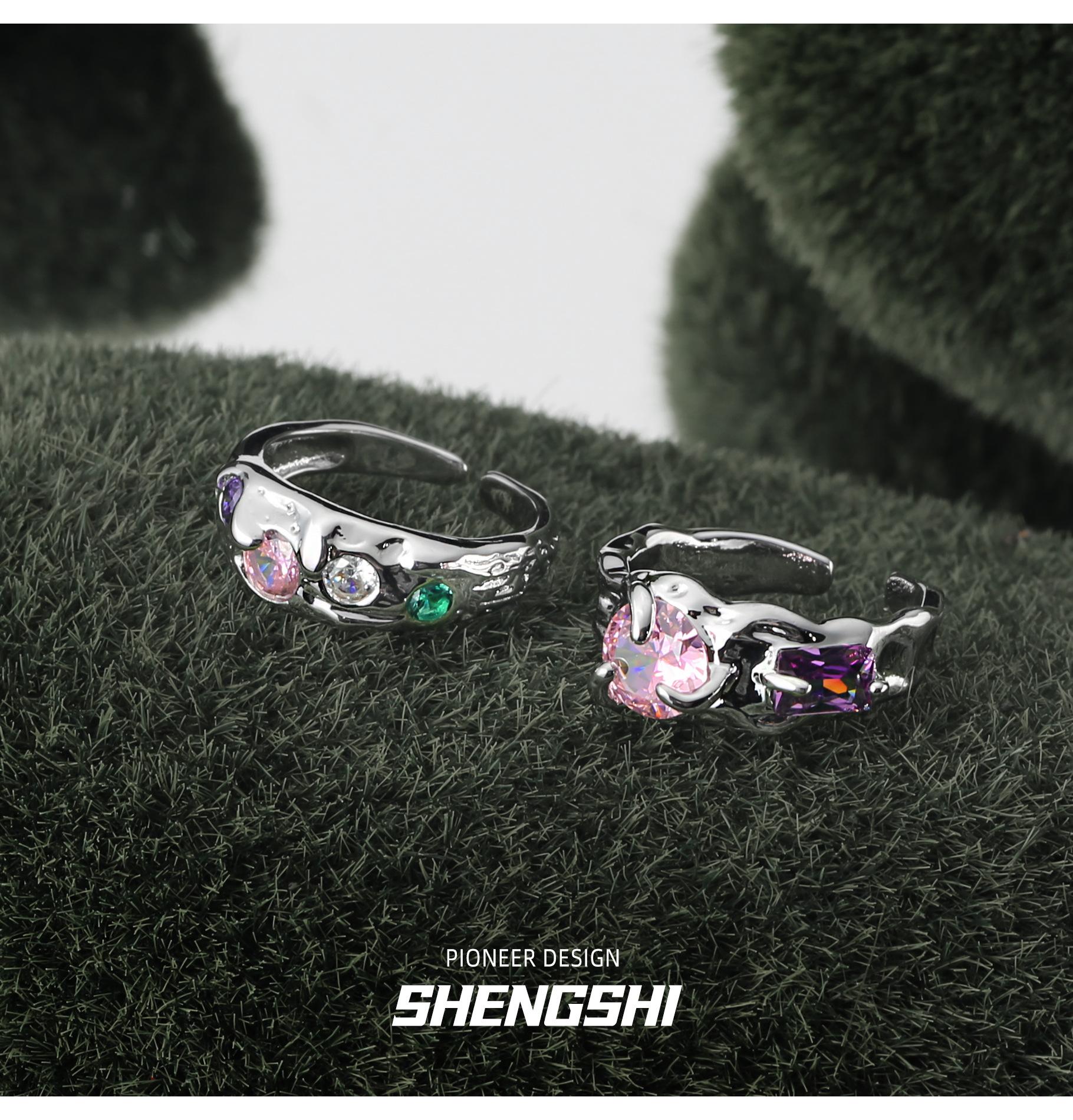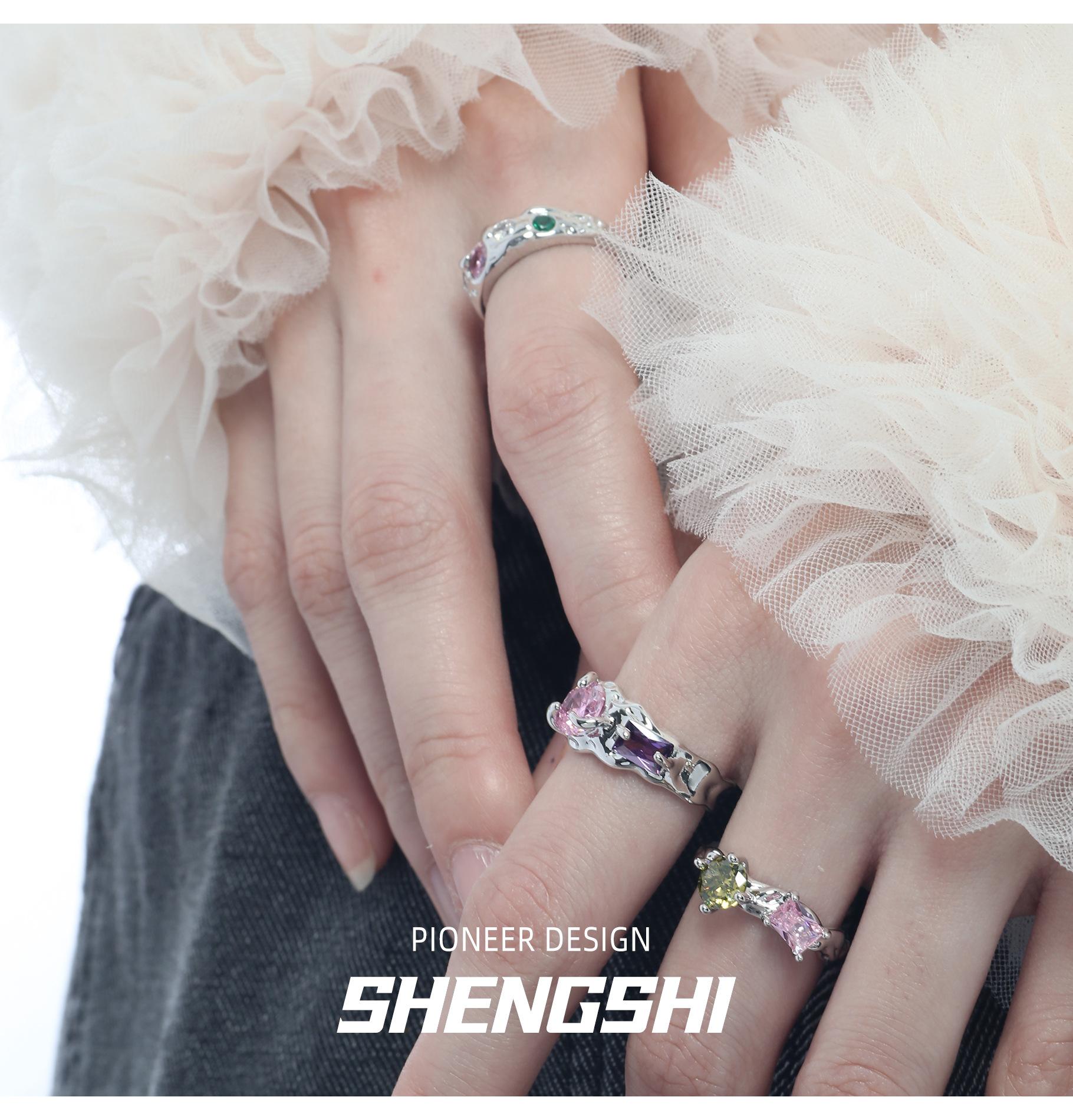 Anillo original de estilo coreano para mujer, venta al por mayor, diseño de nicho de circonita de color, ligero, de lujo, estilo dulce y fresco, temperamento, anillo abierto que combina con todo.