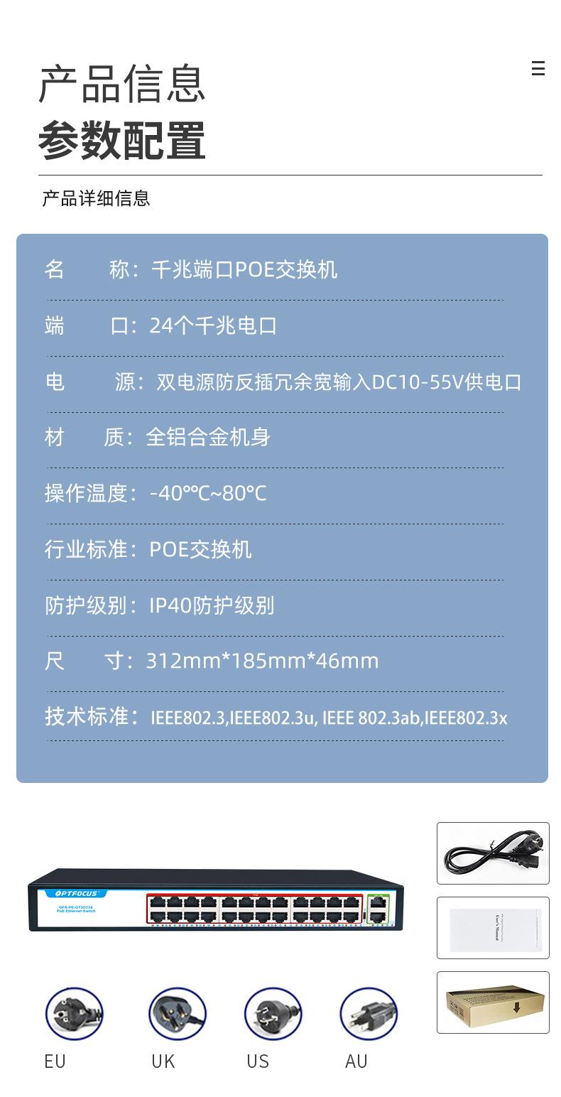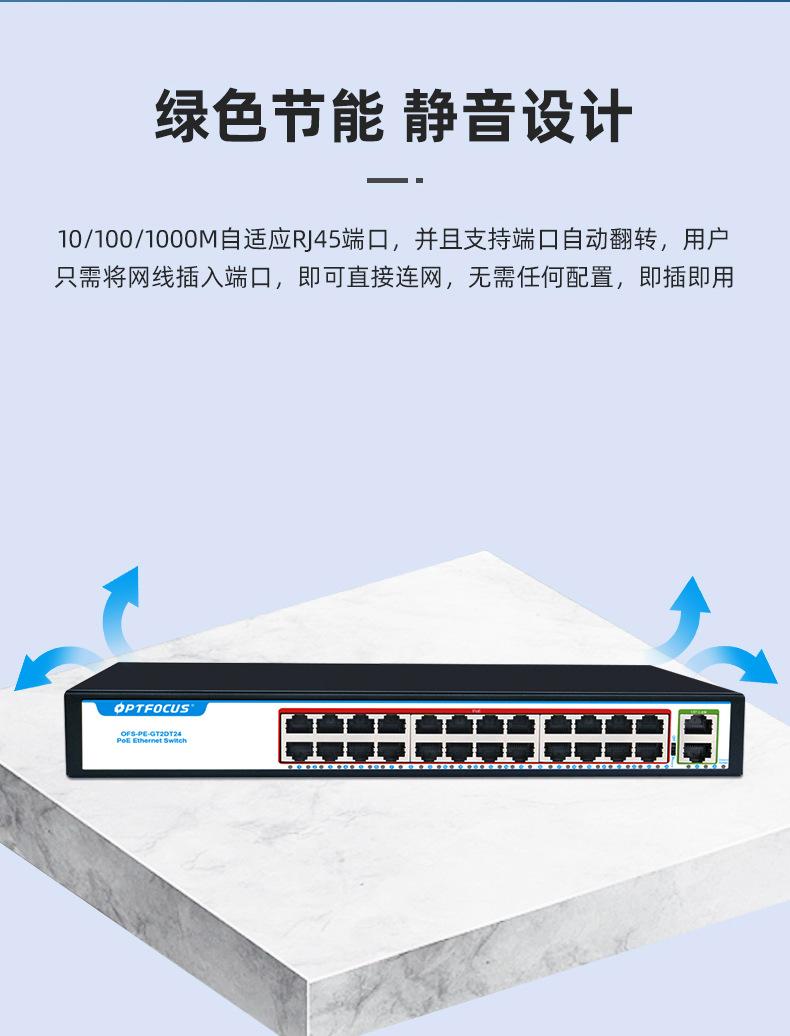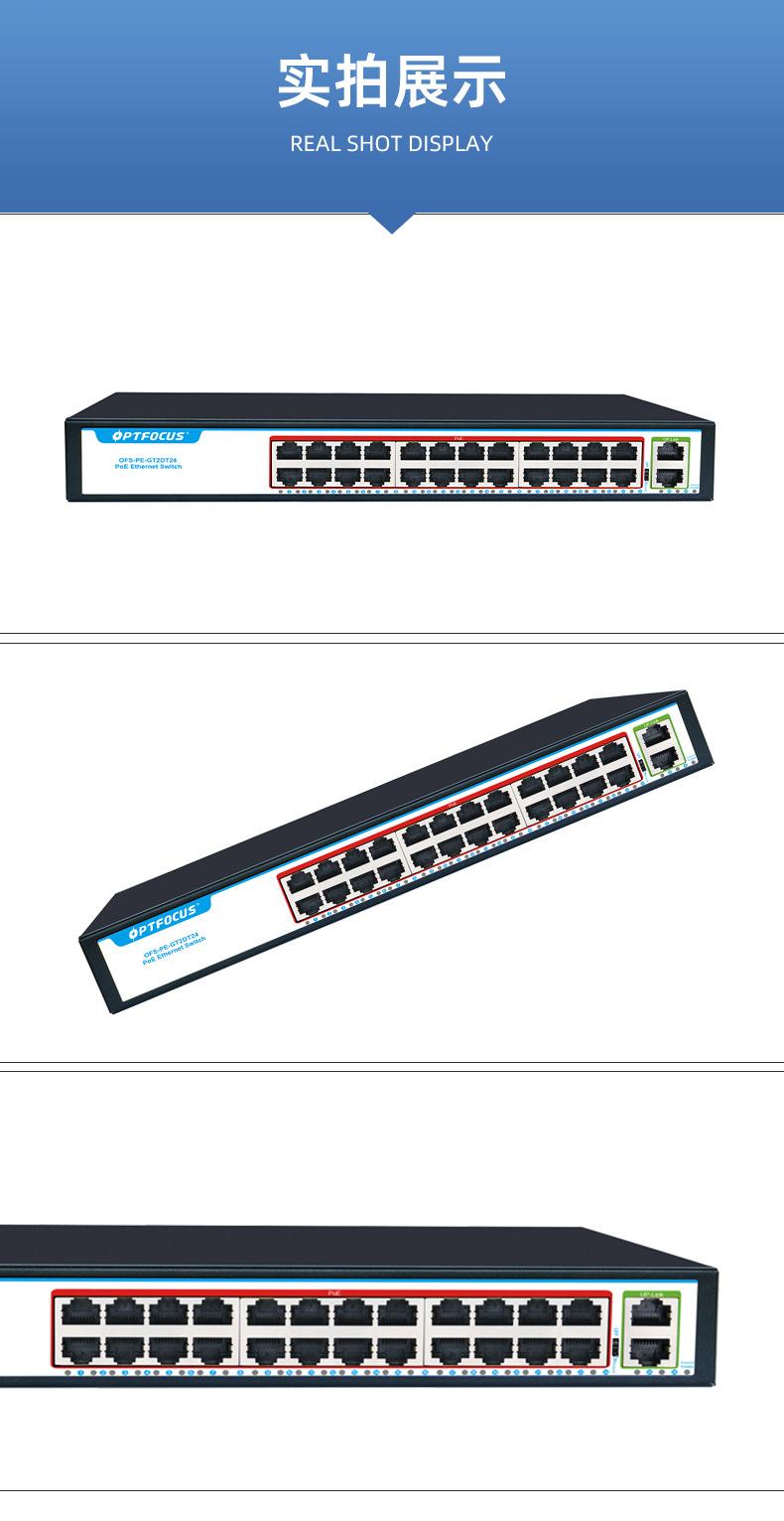 Conmutador PoE de puerto Gigabit de 24 puertos, cámara de monitoreo de fibra óptica compatible con administración de red, fuente de alimentación Ethernet