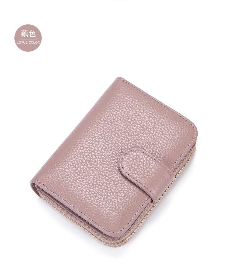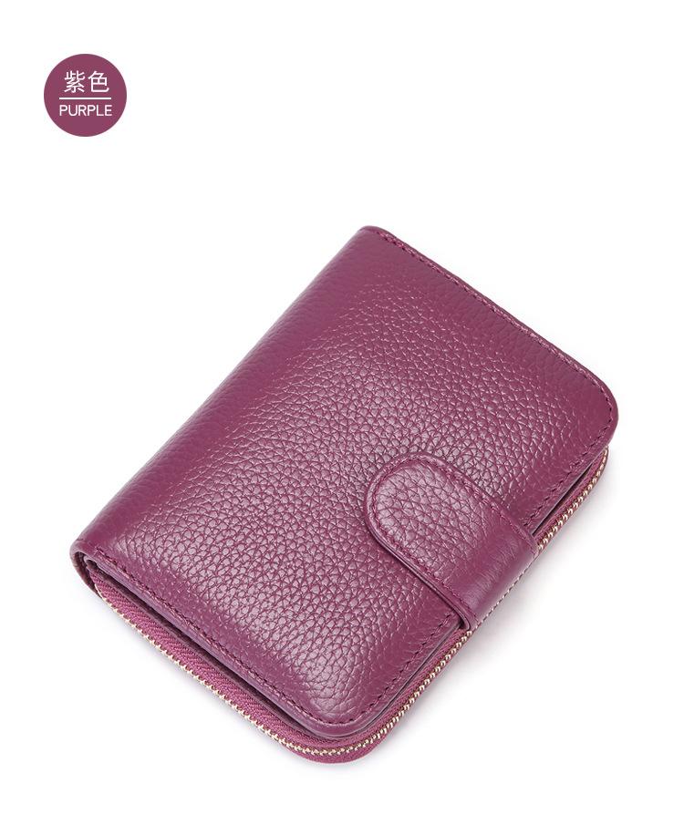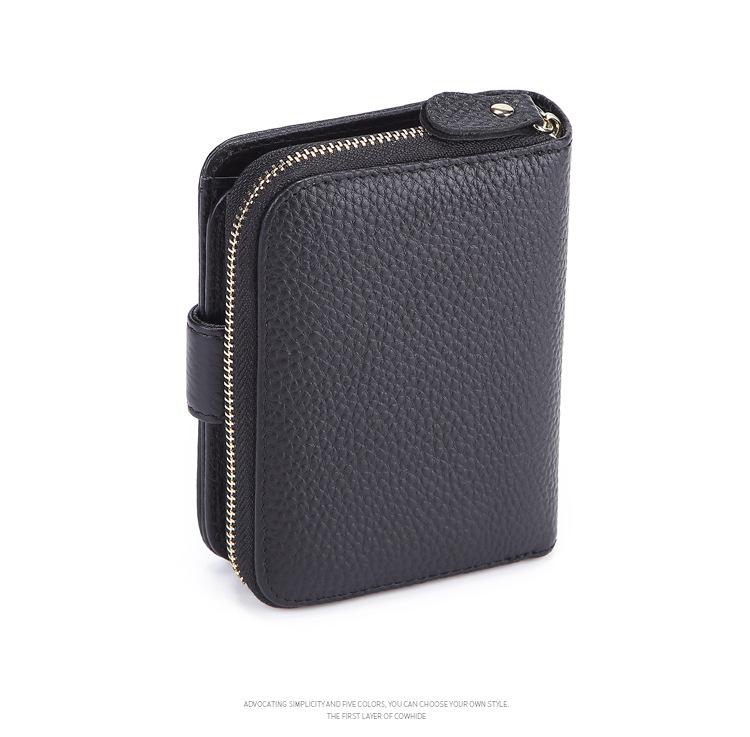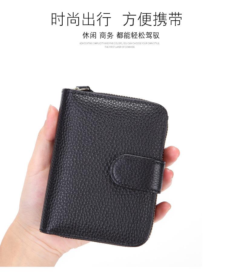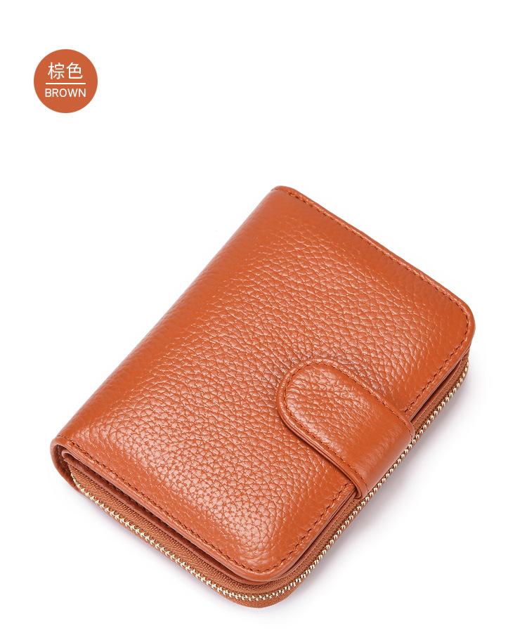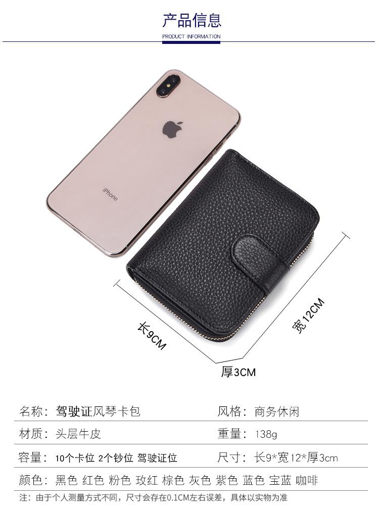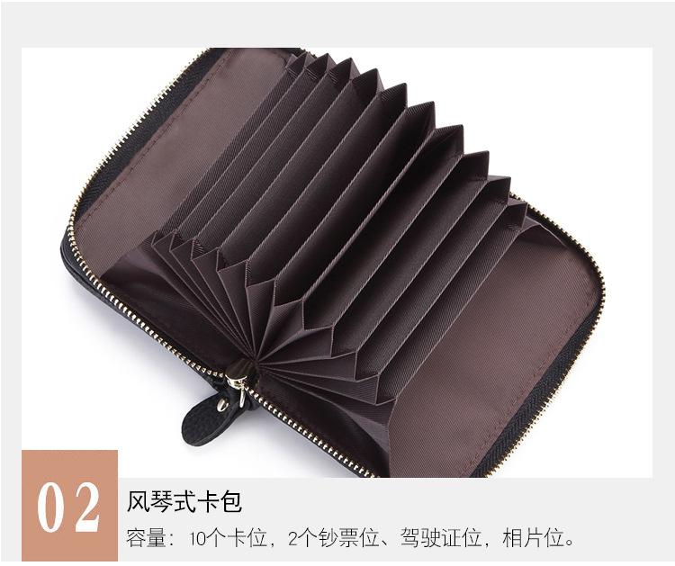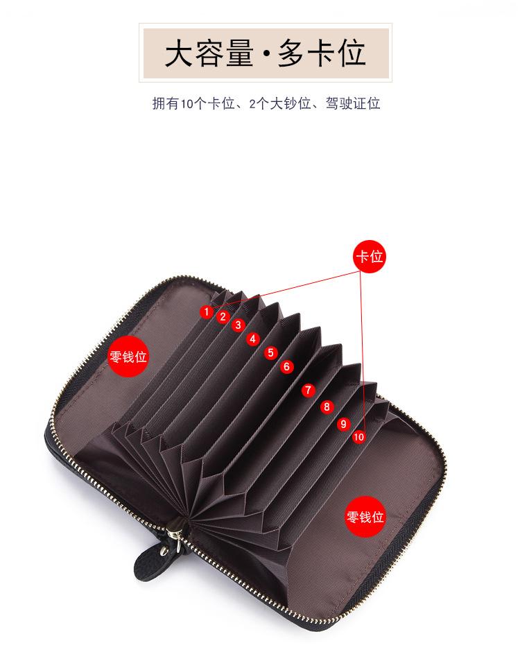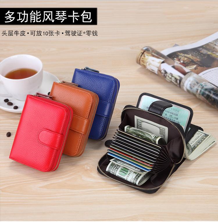 Portatarjetas Acordeón de Cuero Genuino para Hombre y Mujer, Cuero Vacuno de Primera Capa con Cremallera, Portatarjetas para Licencia de Conducir, Billetera para Tarjetas con Protección RFID con Patrón Lichi