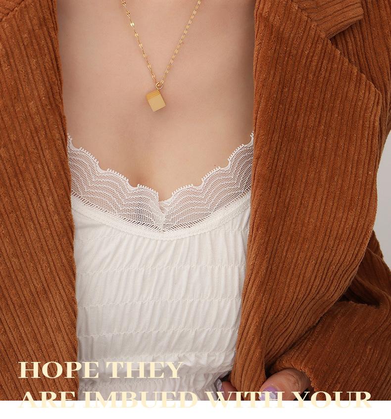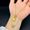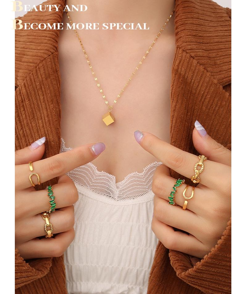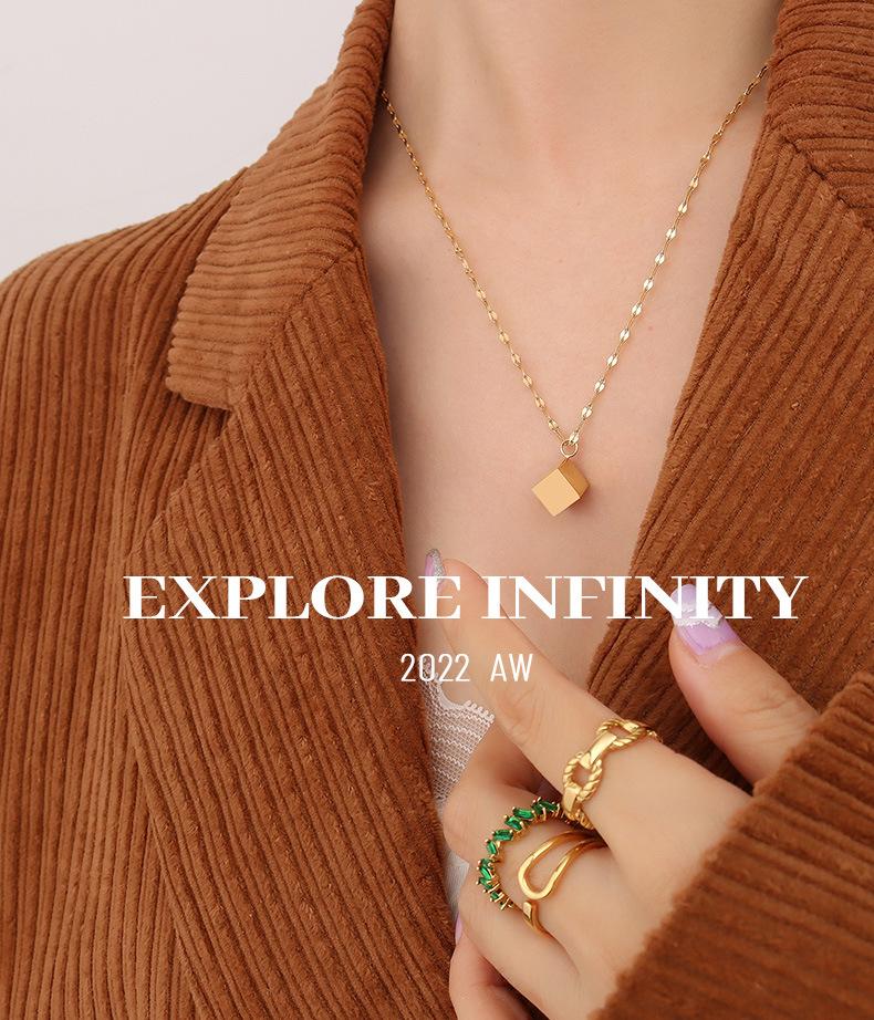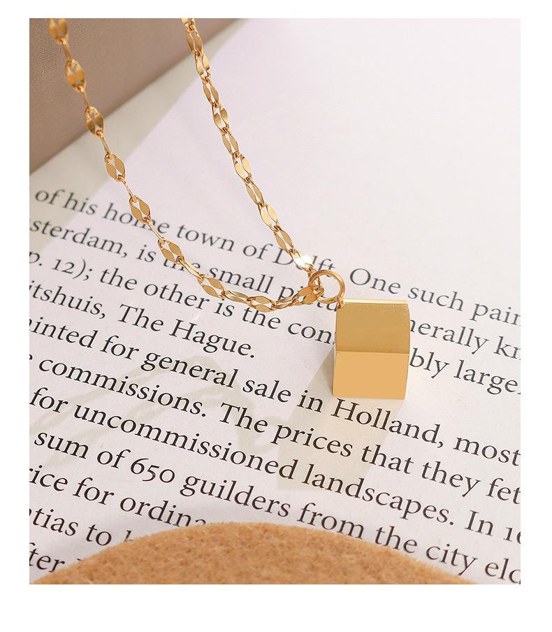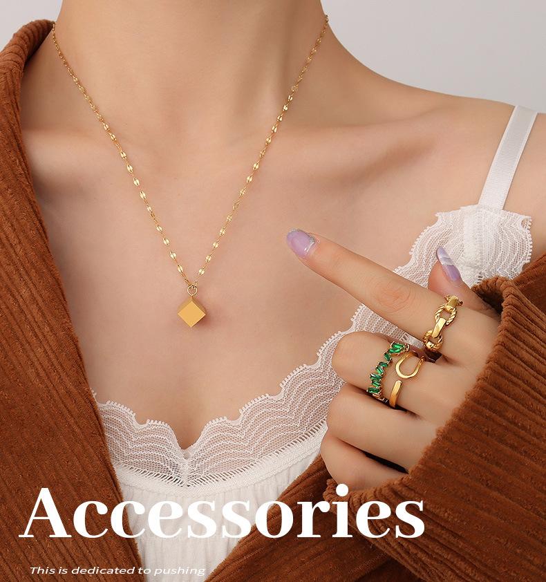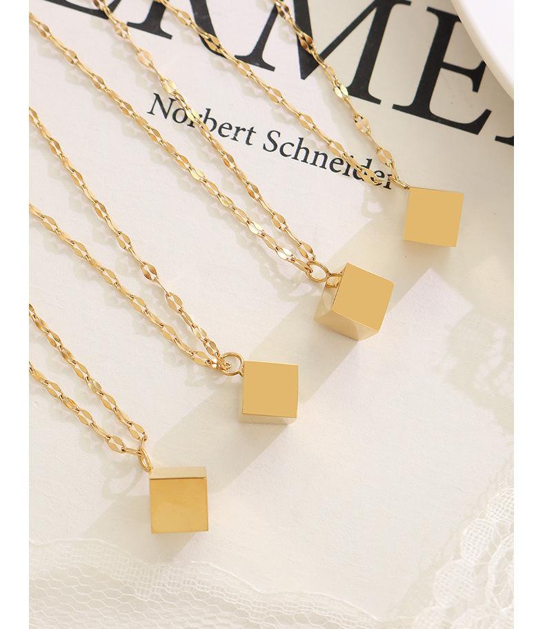 Collar cuadrado tridimensional retro de nicho de estilo europeo y americano, chapado en acero de titanio y oro de 18 quilates, joyería de moda de lujo ligera