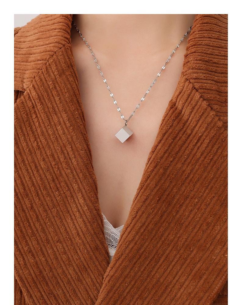 P697-steel color stereo square necklace 45+5cm