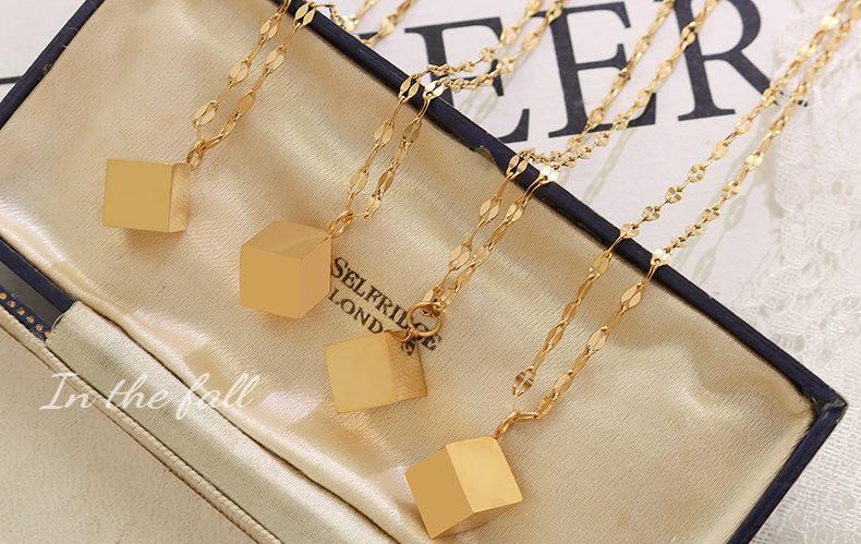 P697-Gold Stereo Square Necklace 45+5cm