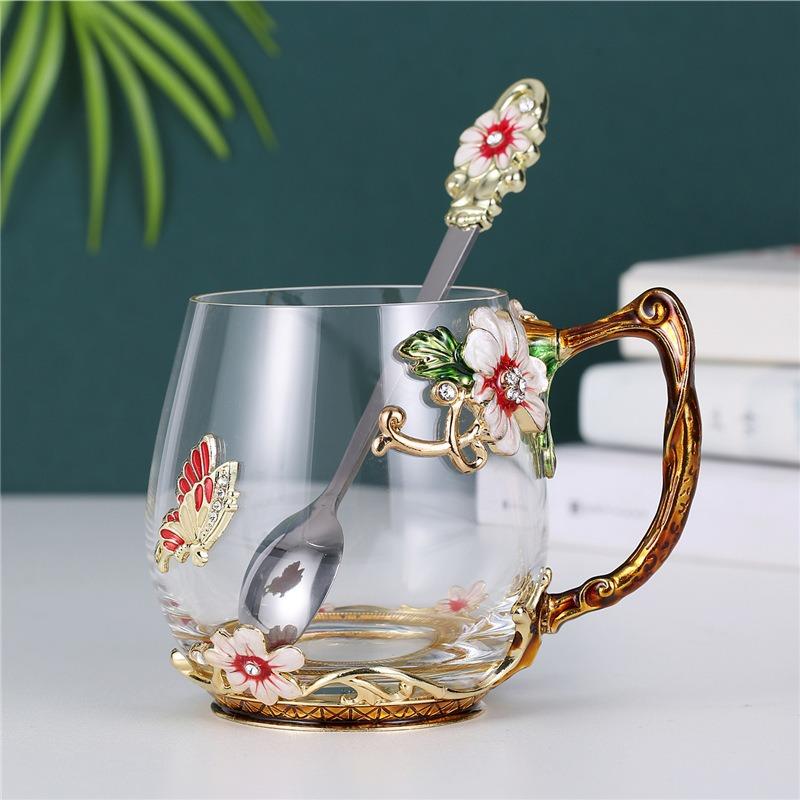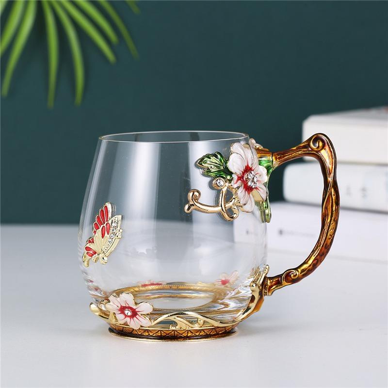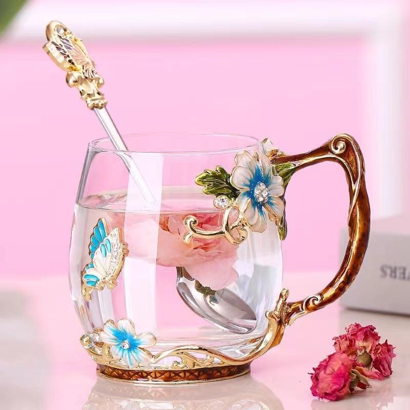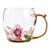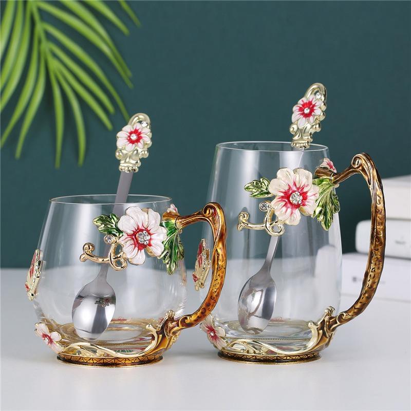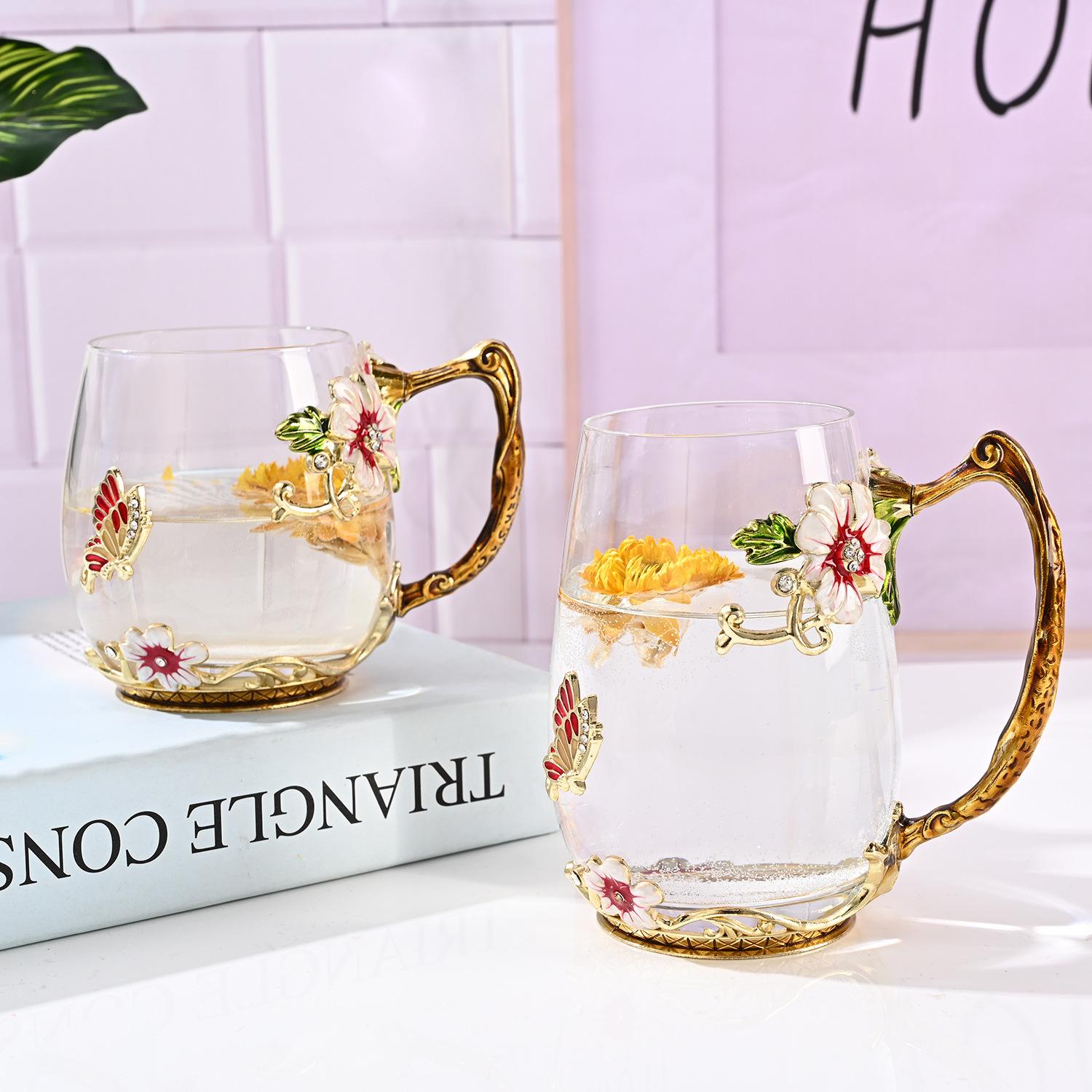 Taza de té con flores de colores esmaltadas, taza de agua de vidrio para el hogar, taza de café redonda para mujer, taza de jugo de leche para desayuno, regalo.