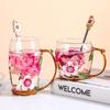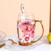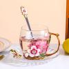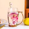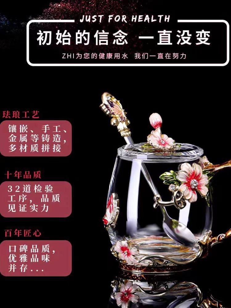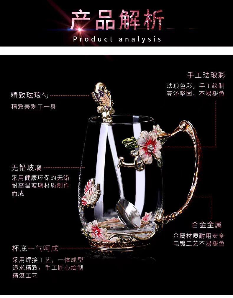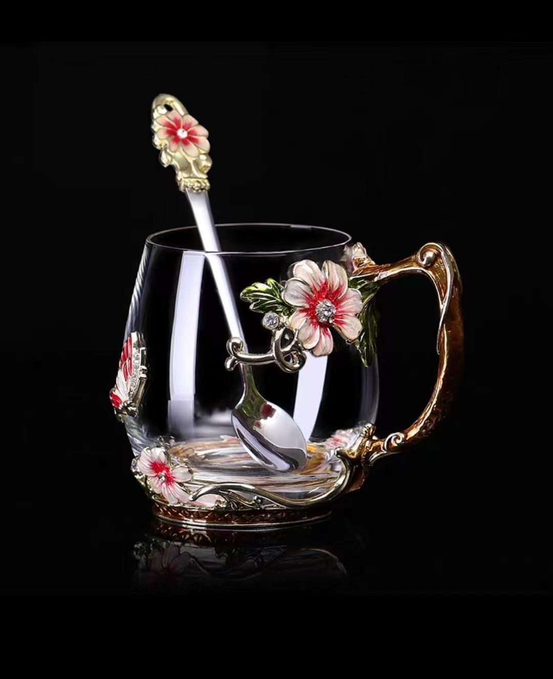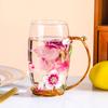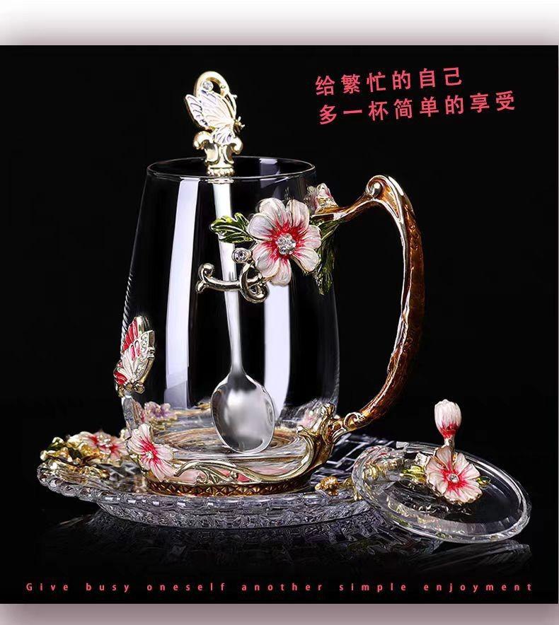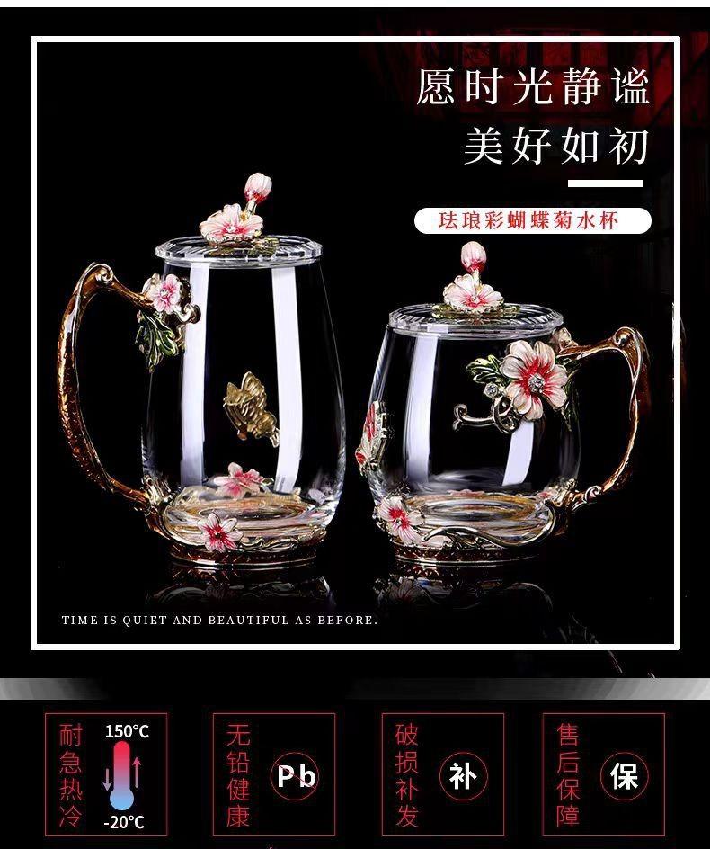 Taza de té con flores de colores esmaltadas, taza de agua de vidrio para el hogar, taza de café redonda para mujer, taza de jugo de leche para desayuno, regalo.