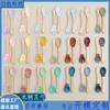 Cuchara Tenedor de Silicona con Mango de Madera Spot Cuchara Tenedor Infantil Cuchara de Mango Largo Especial para Bebé Cuchara Suave para Niños Vajilla