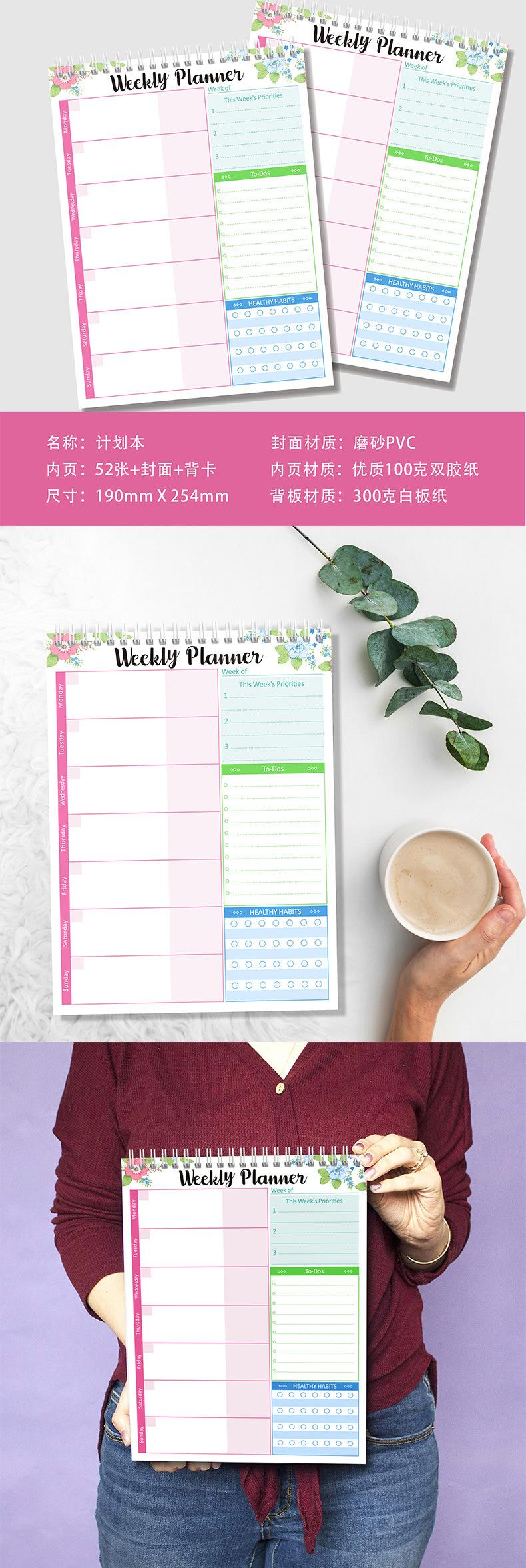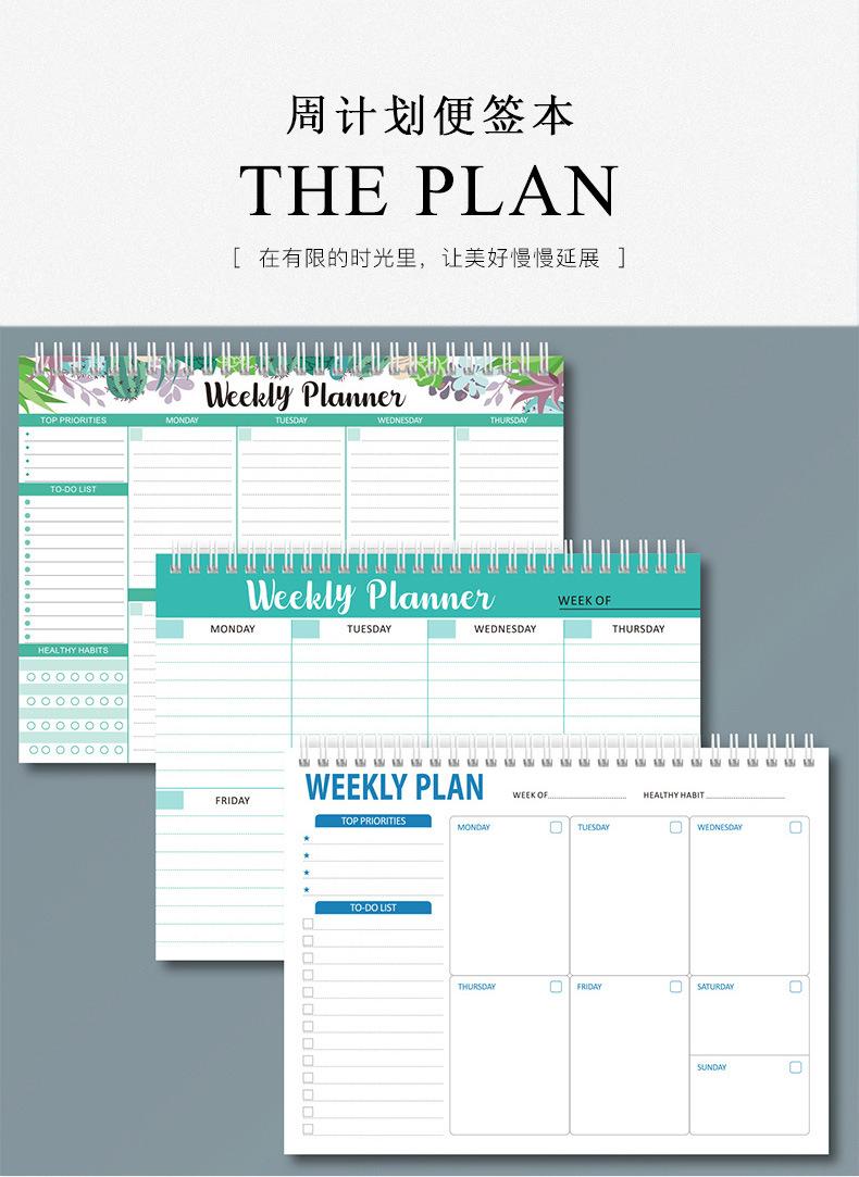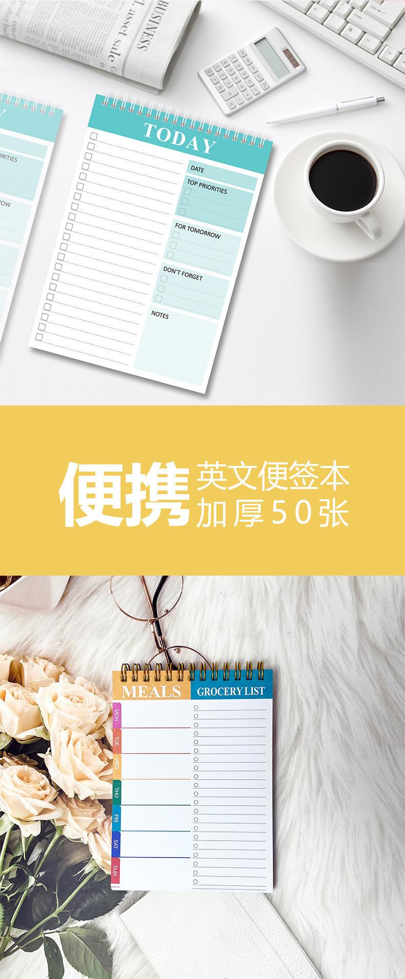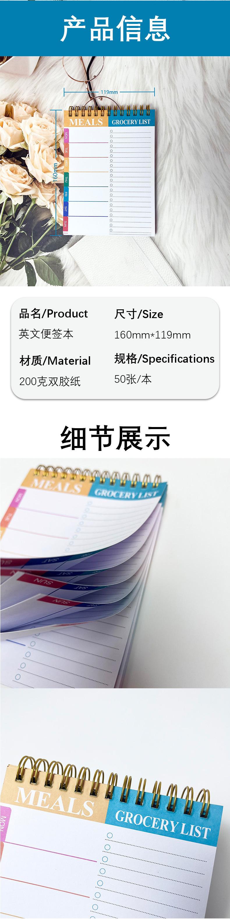 Cuaderno de notas en inglés de doble espiral, cuaderno de notas adhesivas en inglés, diario de planificación, cuaderno de notas para estudiantes, cuaderno de planificación semanal