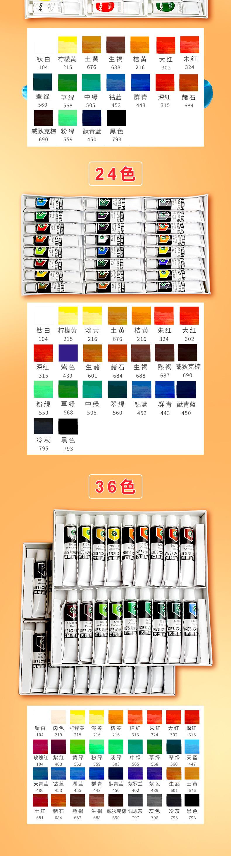 A- 812 Marley Acrylic Paint 12 Color 12ml, A- 818 Marley Acrylic Paint 18 Color 12ml, A- 824 Marley acrylic pa...