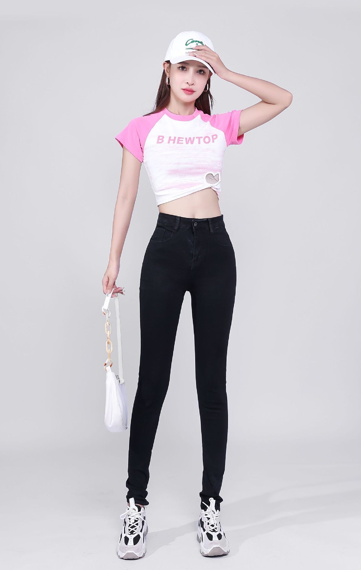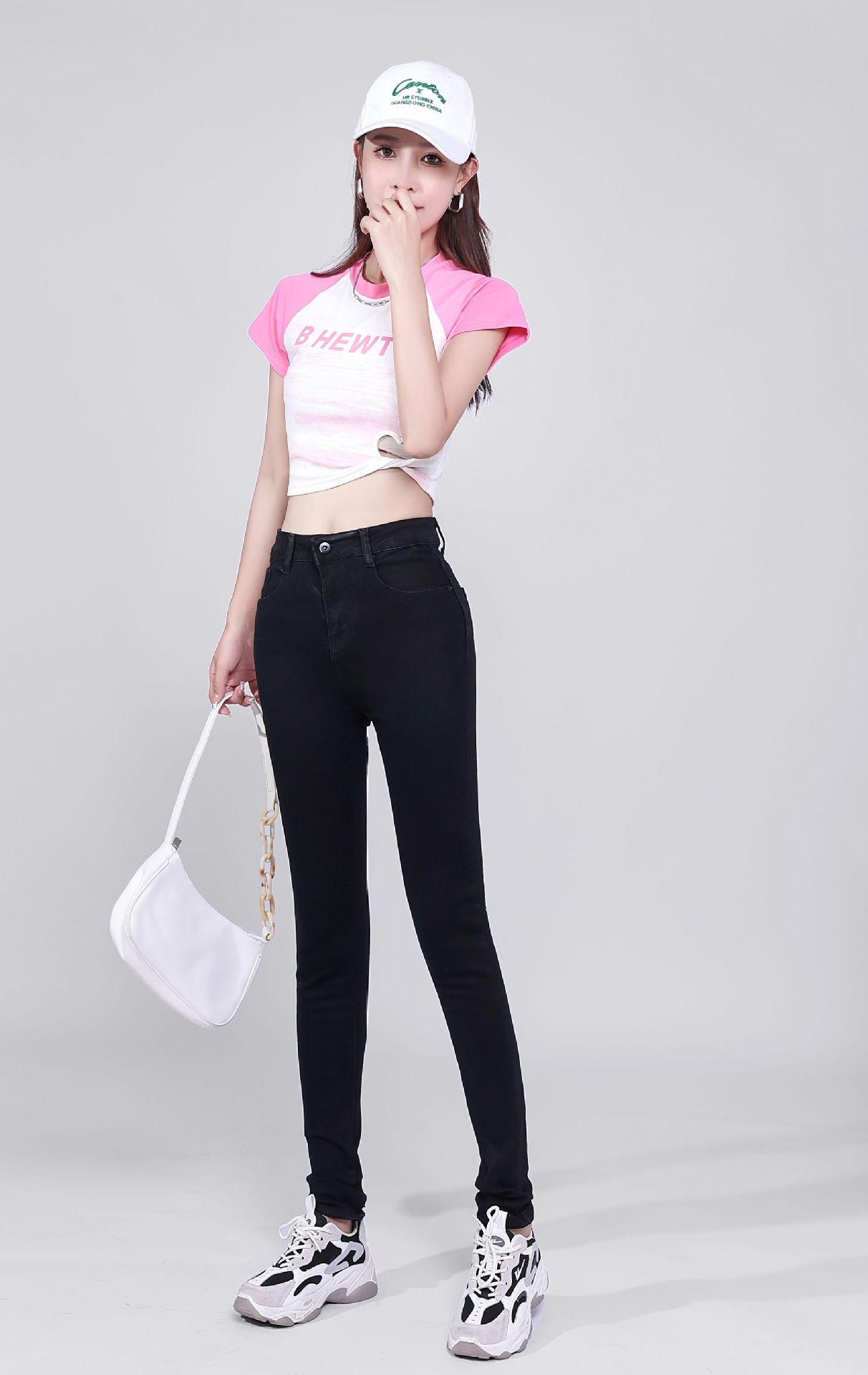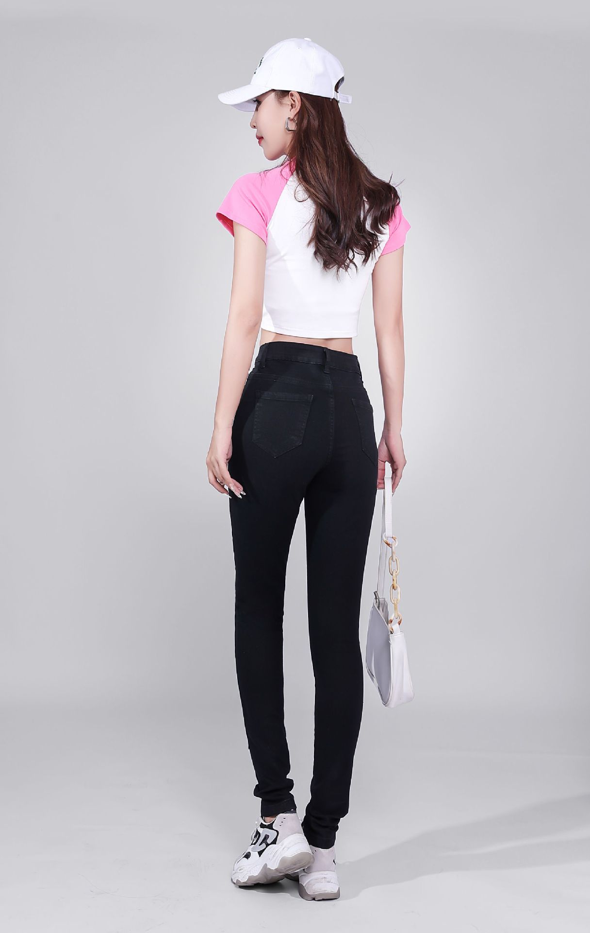 Venta al por mayor de pantalones vaqueros ajustados para mujer, de alta calidad, elásticos, de talla grande, ajustados, para primavera y otoño.