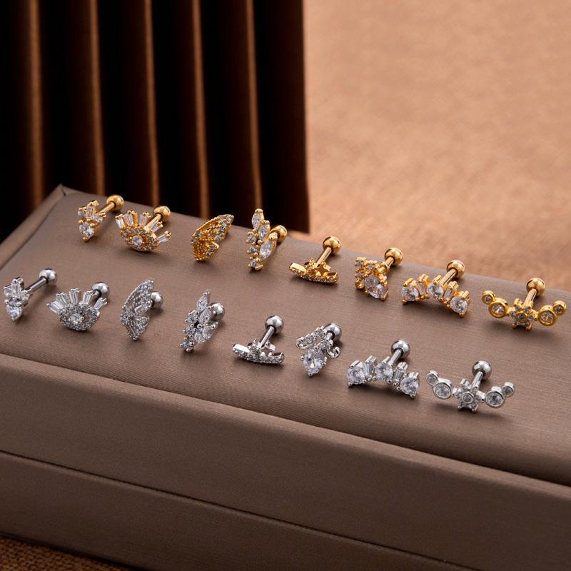 nombre del producto | Varilla de acero inoxidable moderna circonita uña para hueso de la oreja flor mariposa forma de ojo bola de rosca uña para la oreja piercing cartílago oreja |