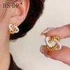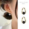 White Hao Stone Ear Buckle, silver Black Zircon Ear Buckle, silver earring, Gold black zircon ear buckle