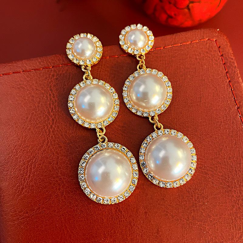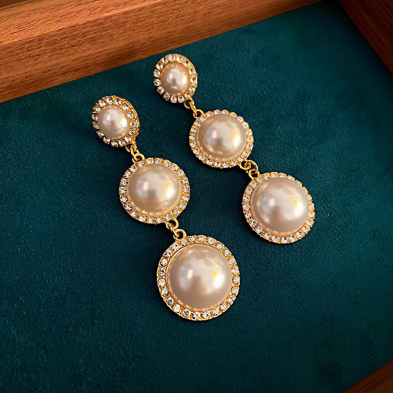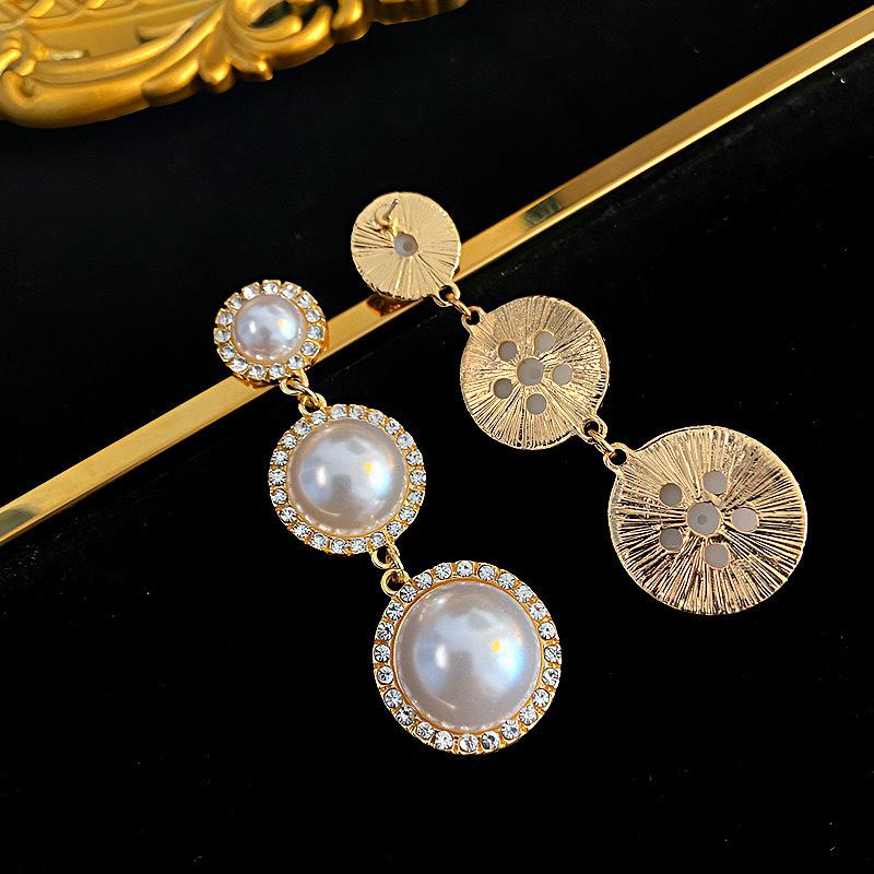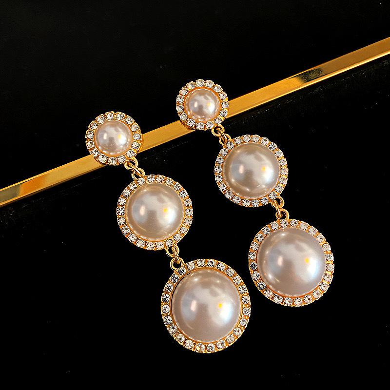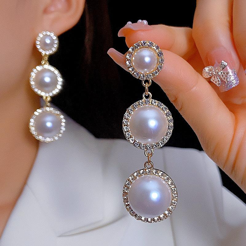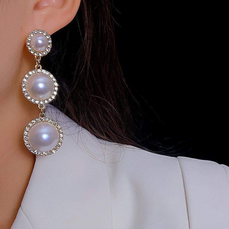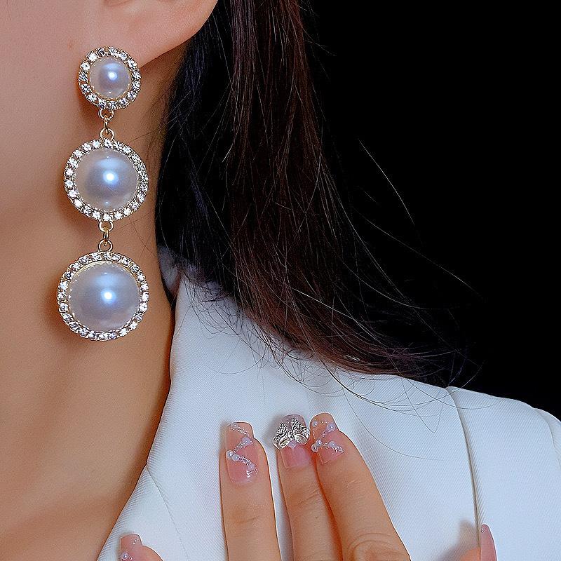 Pendientes de borlas de perlas con círculos exagerados europeos y americanos, pendientes de estilo frío de moda con personalidad combinable para mujer, pendientes de aguja de plata 925