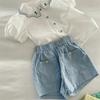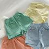 Pantalones cortos de verano para niñas, populares en línea, estilo occidental para niños, distintivos, de moda, estilo coreano, color caramelo, de algodón puro, pantalones cortos finos que combinan con todo.