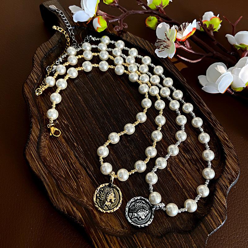 Collar con colgante redondo de perla, estilo retro francés, elegante cadena para la clavícula, lujo ligero, joyería moderna y versátil, exquisito al por mayor