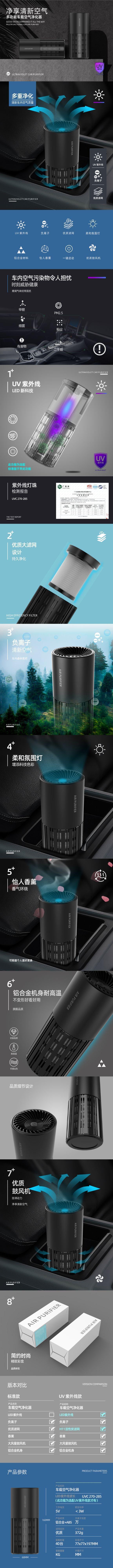 Purificador de aire para coche con USB, nuevo, de aleación de espacio completo, desinfección ultravioleta UV, iones negativos, suministros para coche