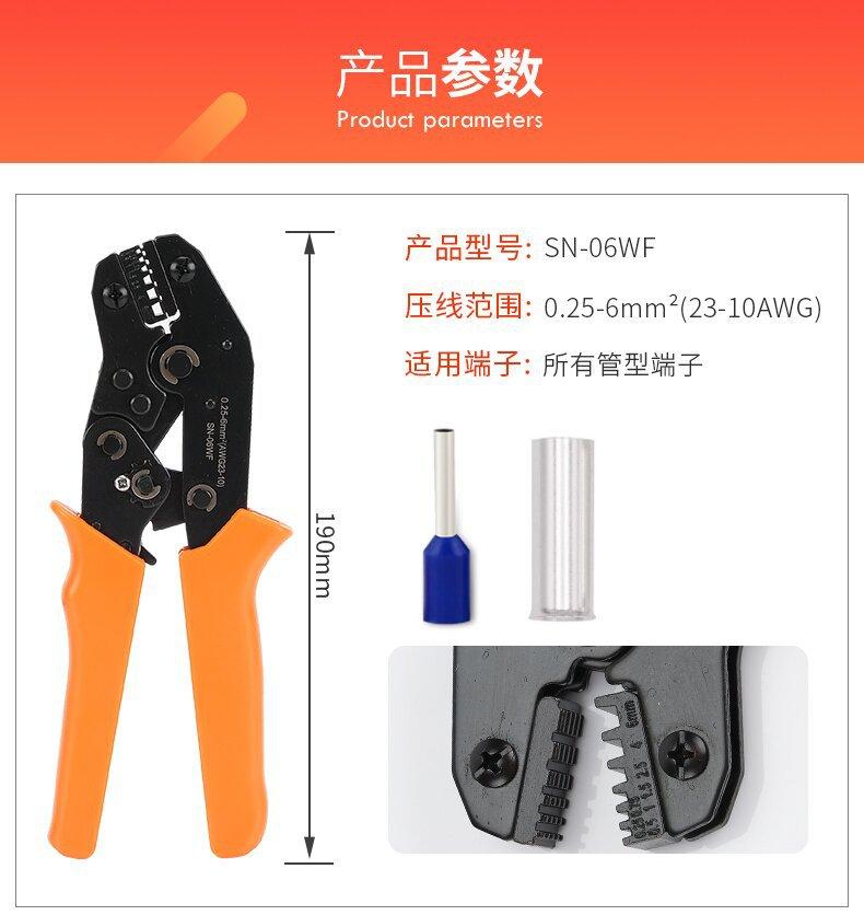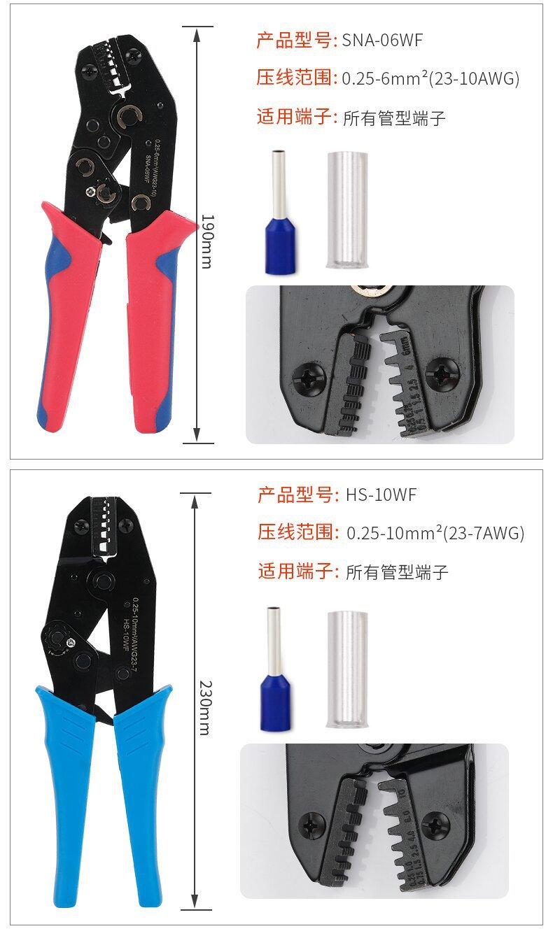 Alicates de crimpado de trinquete SN-06WF/HS-10WF, herramienta manual para crimpar terminales tubulares aislados.