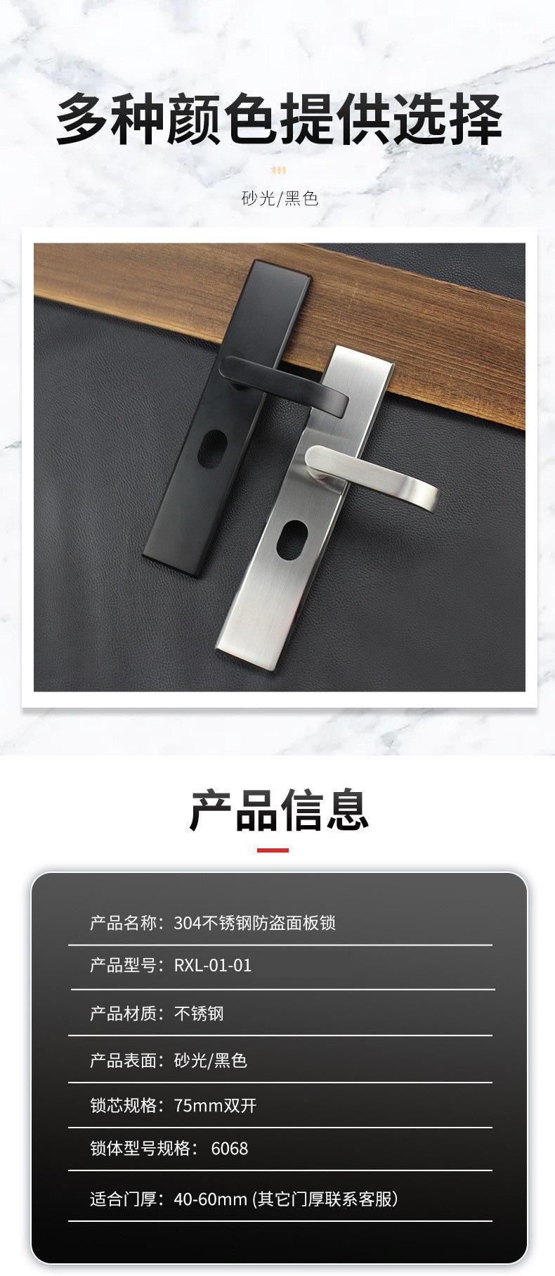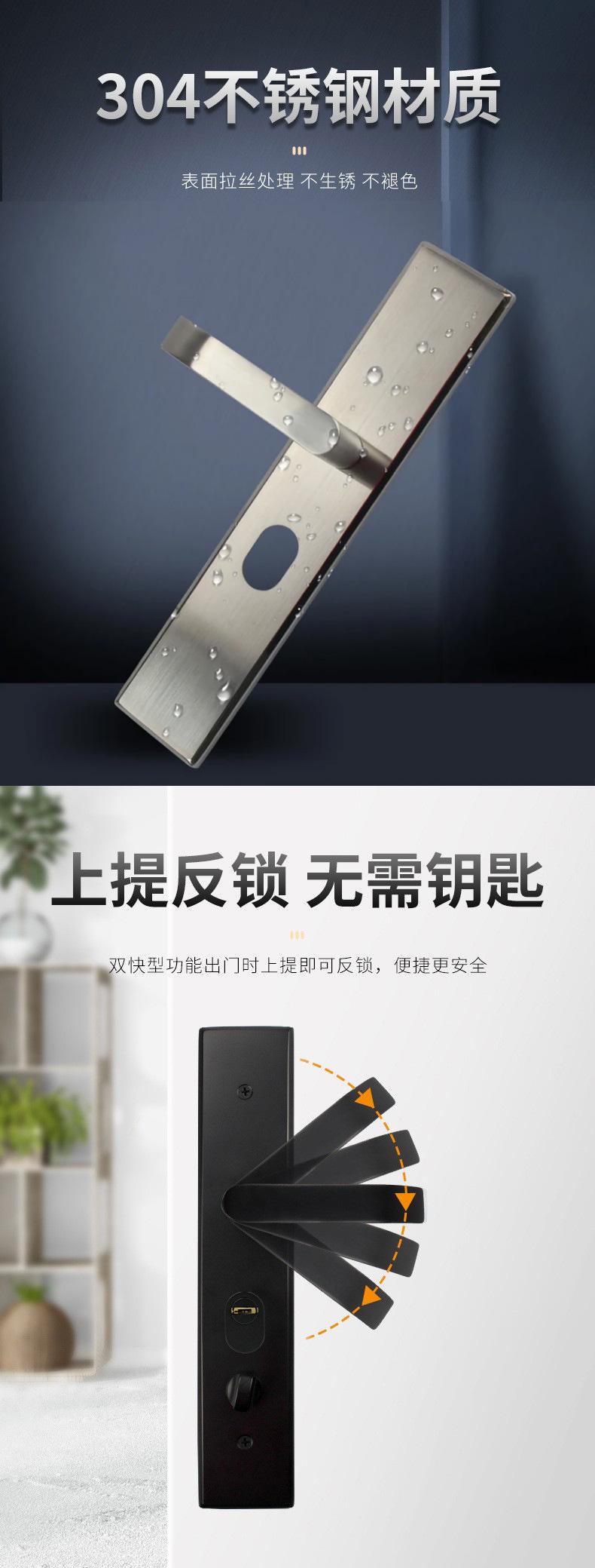 Juego de cerradura de panel antirrobo de acero inoxidable 304 negro universal para puerta de casa, cerradura para puerta de entrada, cerradura para puerta de madera maciza