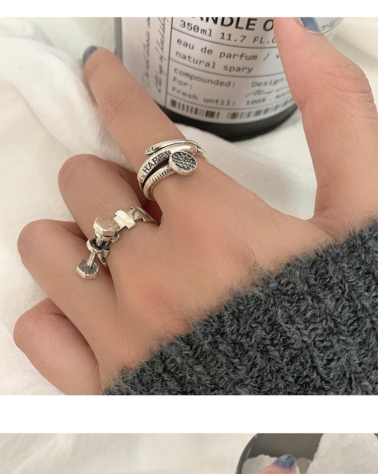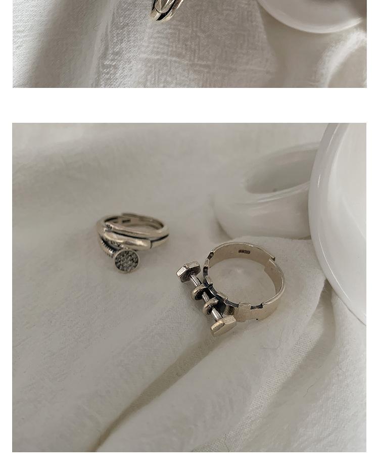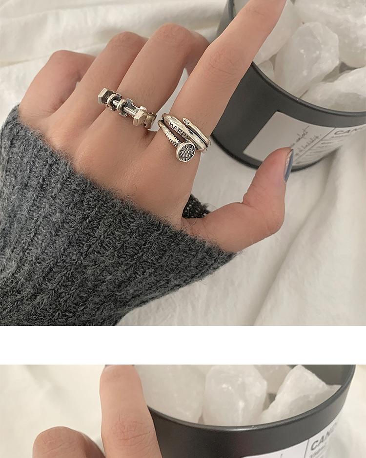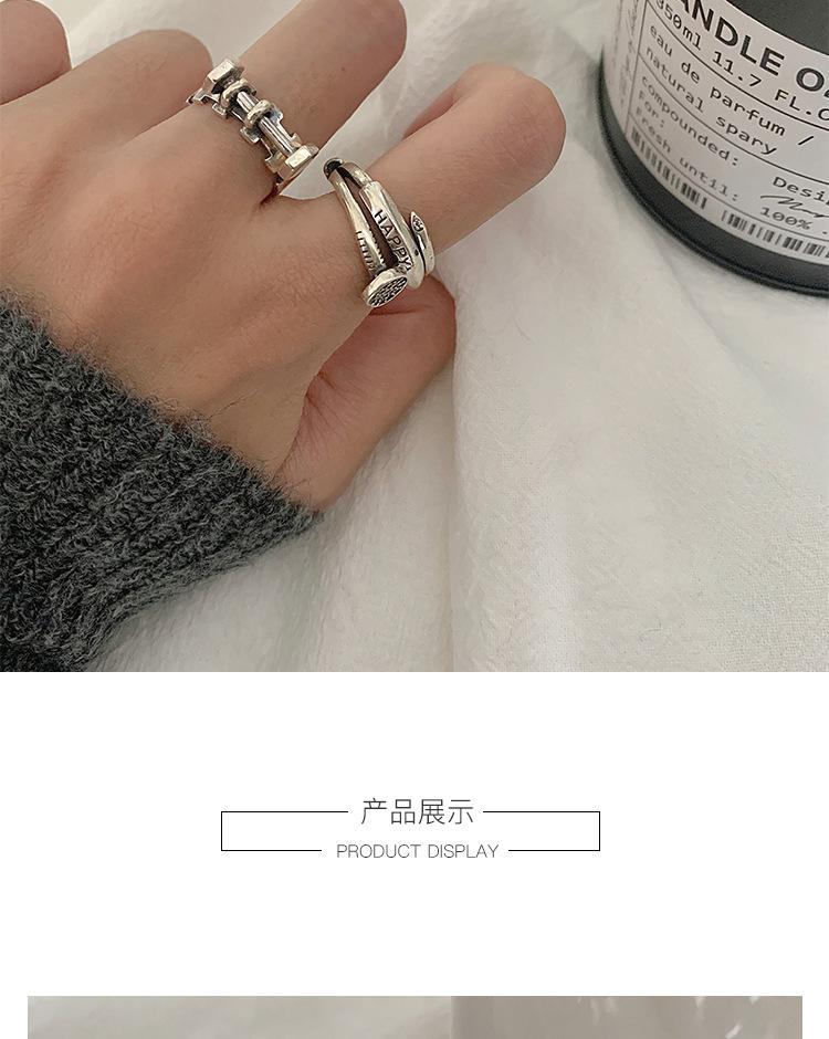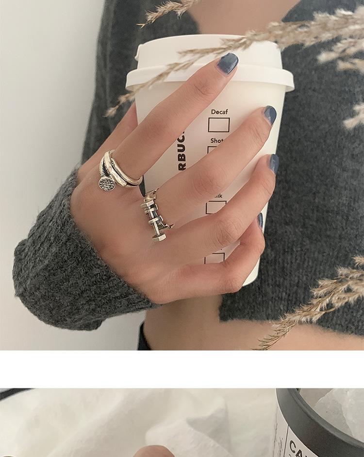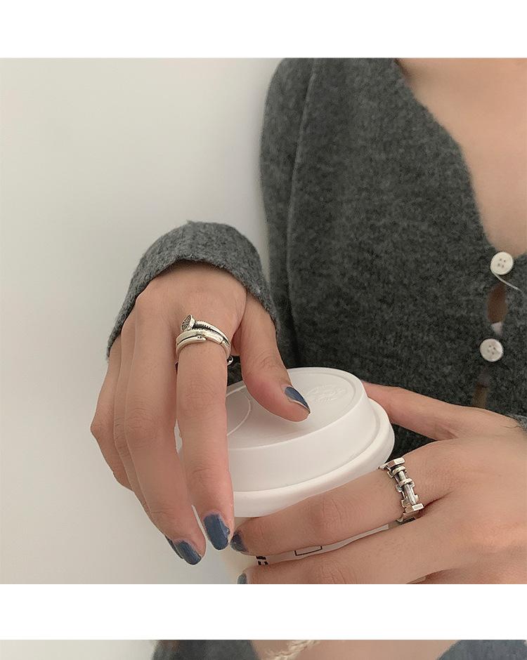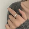Anillo Retro Geométrico Multicapa para Mujer Simple Plata S925 Asimétrico Redondo Anillo Hip-Hop Dedo Índice Joyería Estilo Coreano